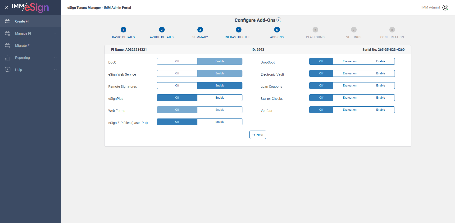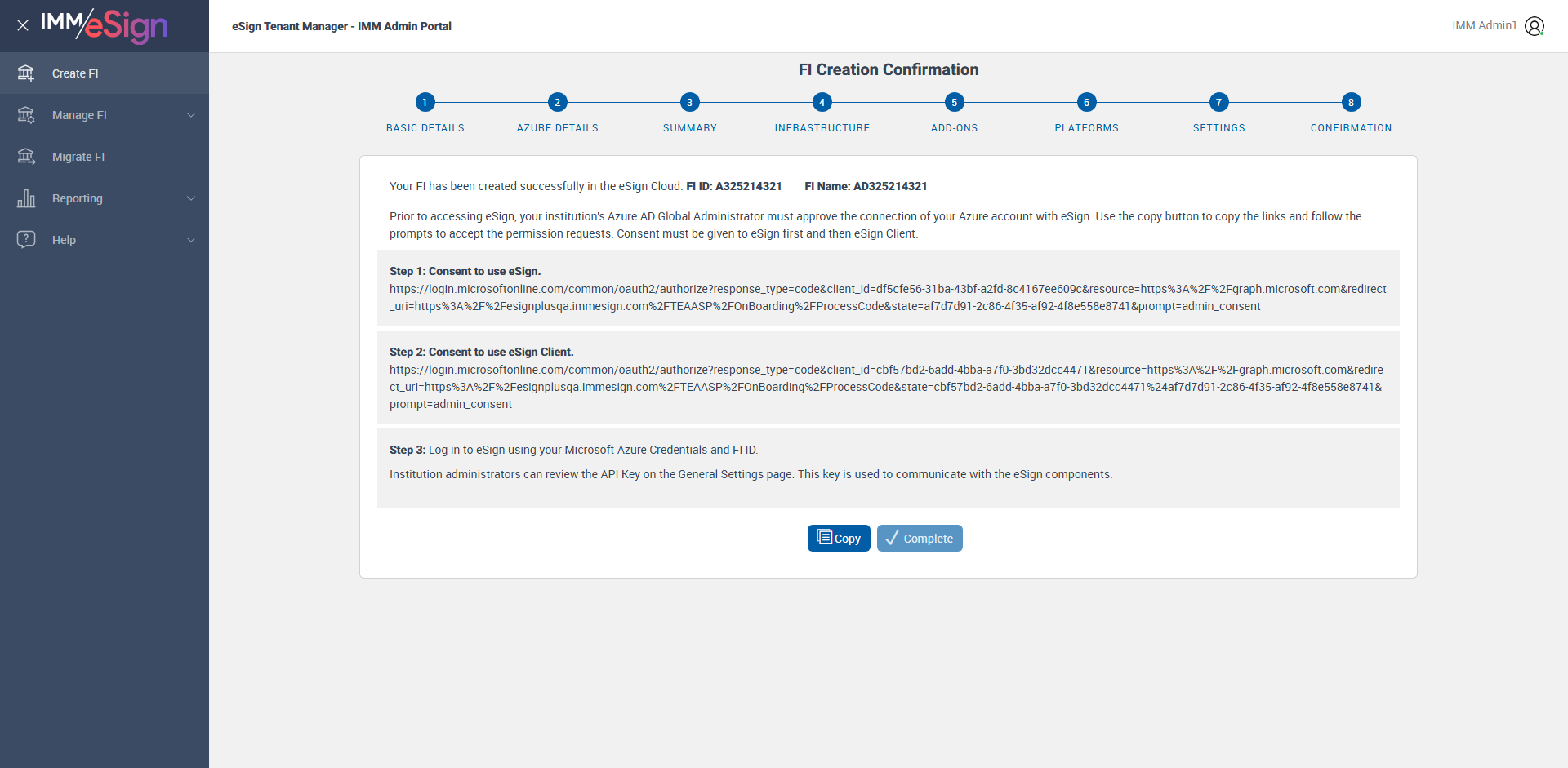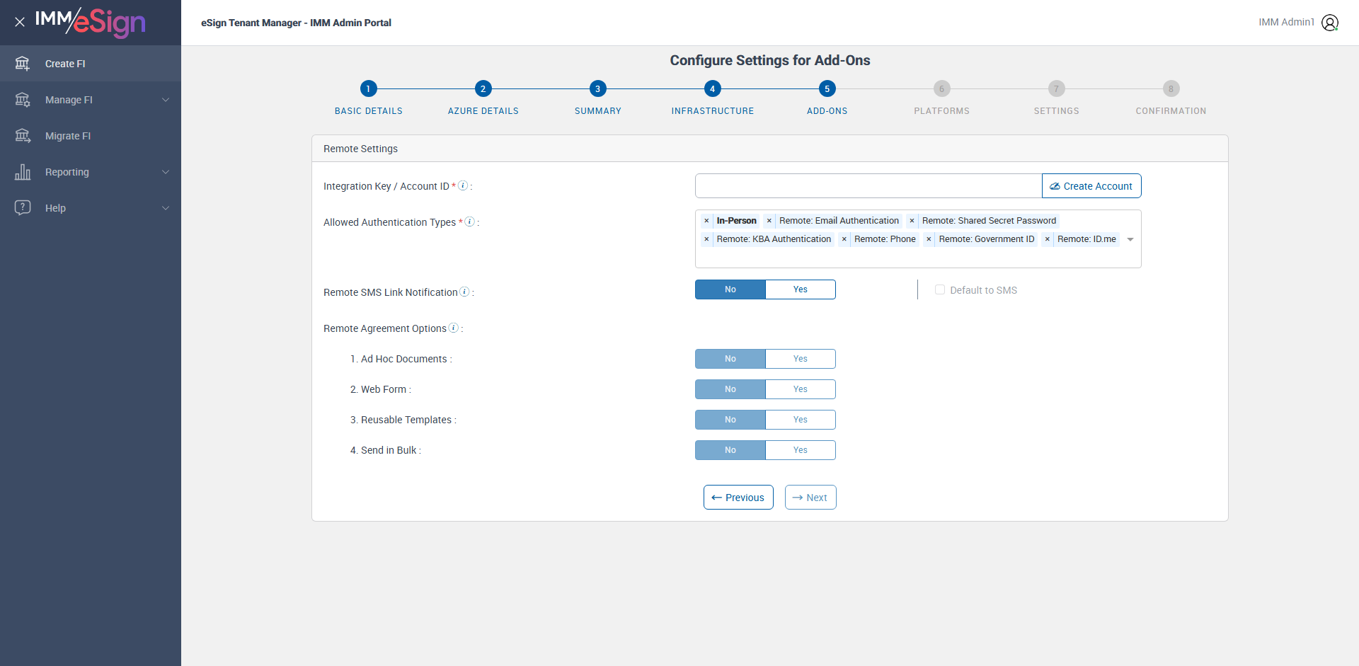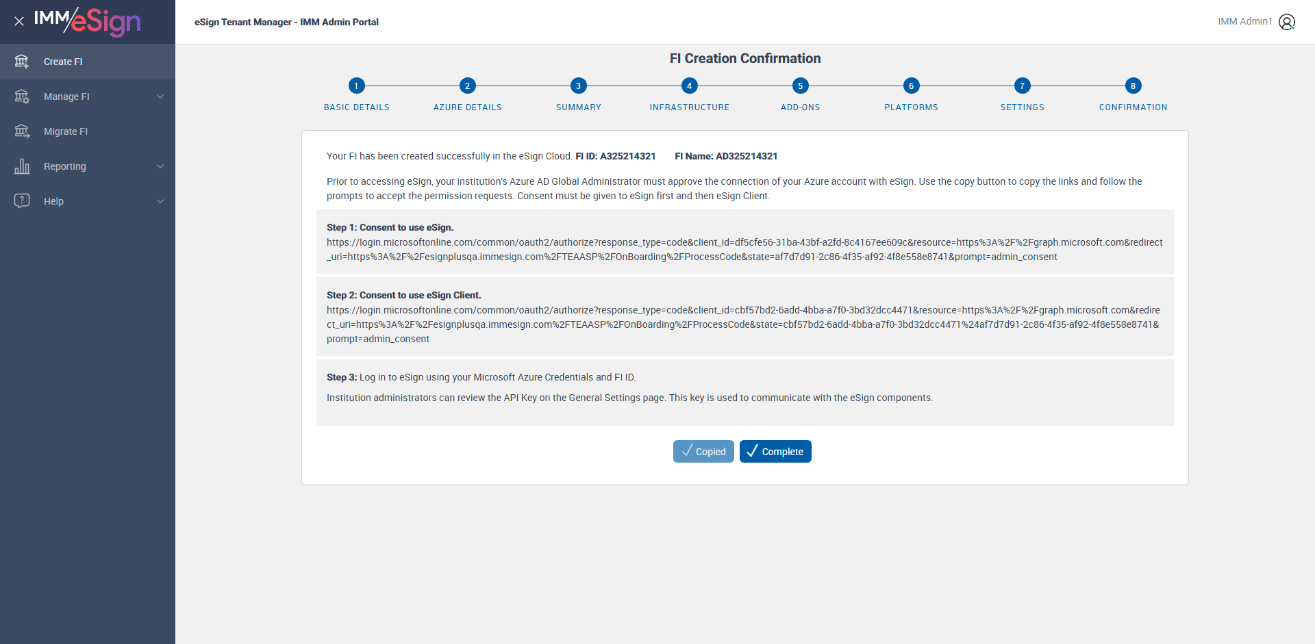 ({ZIP=, Login_User_ID=immadmin1@immesignqa.onmicrosoft.com, RemoteSettings=Ad Hoc Document,Web Form,Reusable Templates, FiStatus=, AdobeKey=, FiAdmin_LastName=Teller, Name=, LocalDomain=immtestcu, eSignPlus=, RtmAuthTypes=, IntegrationType=Fully Integrated, RemoteSign=Enable, DrpSpot=, AZDomain=immtestcu.onmicrosoft.com, VerifastEDays=, City=, WrongAZDomain=, LCEvalDays=, State=, LoanCoupon=, Login_Password=iMM@2024, Country=, ClientID=, FIID=, Key=, FiAdmin_FirstName=Bill, Dictionary=TeSign;XPLN, Sign_RmtAgree_NotChecked=Send in Bulk, StarterEvalDays=, Description=Verify Create Fi Complete Flow With Fully Integrated Account, StarterChecks=, eSignURL=https://esignplusqa.immesign.com/TEAASP/Login.aspx, E-Vault=, Filepath=, TestID=VerifyCreateFiCompleteFlowWithOEMandLegacy, FiAdmin_UserID=billteller@immtestcu.onmicrosoft.com, Verifast=, LacerPro=, Notes=, Session URL=https://esignnonprod.immesign.com/qa/tenantmanager/, GlobalAdmin=cuadmin@immtestcu.onmicrosoft.com, TypeOfUser=, eValultDays=, ErrorMsg=, Address2=, Address3=, Address1=, Sign_Password=iMM@2022, WrongFIID=, DrpEvalDays=, Sign_RmtAgree_checked=Ad Hoc Document,Web Form,Reusable Templates,Manage Remote Agreements})