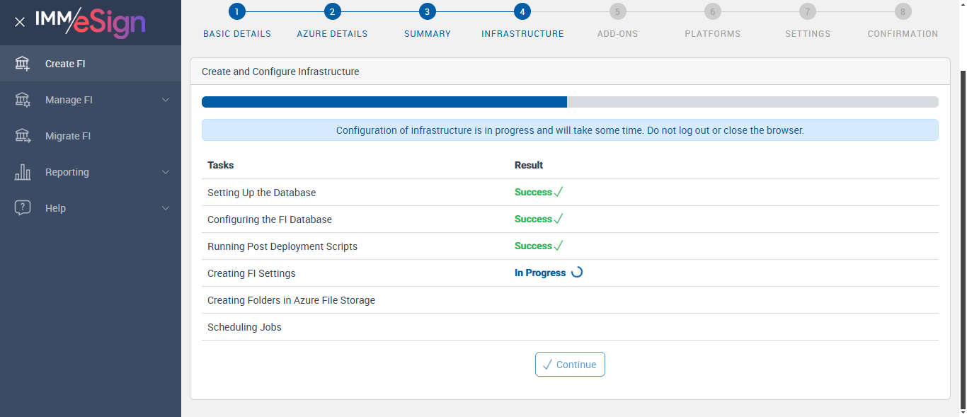 Successfully Configured 'Creating FI Settings'