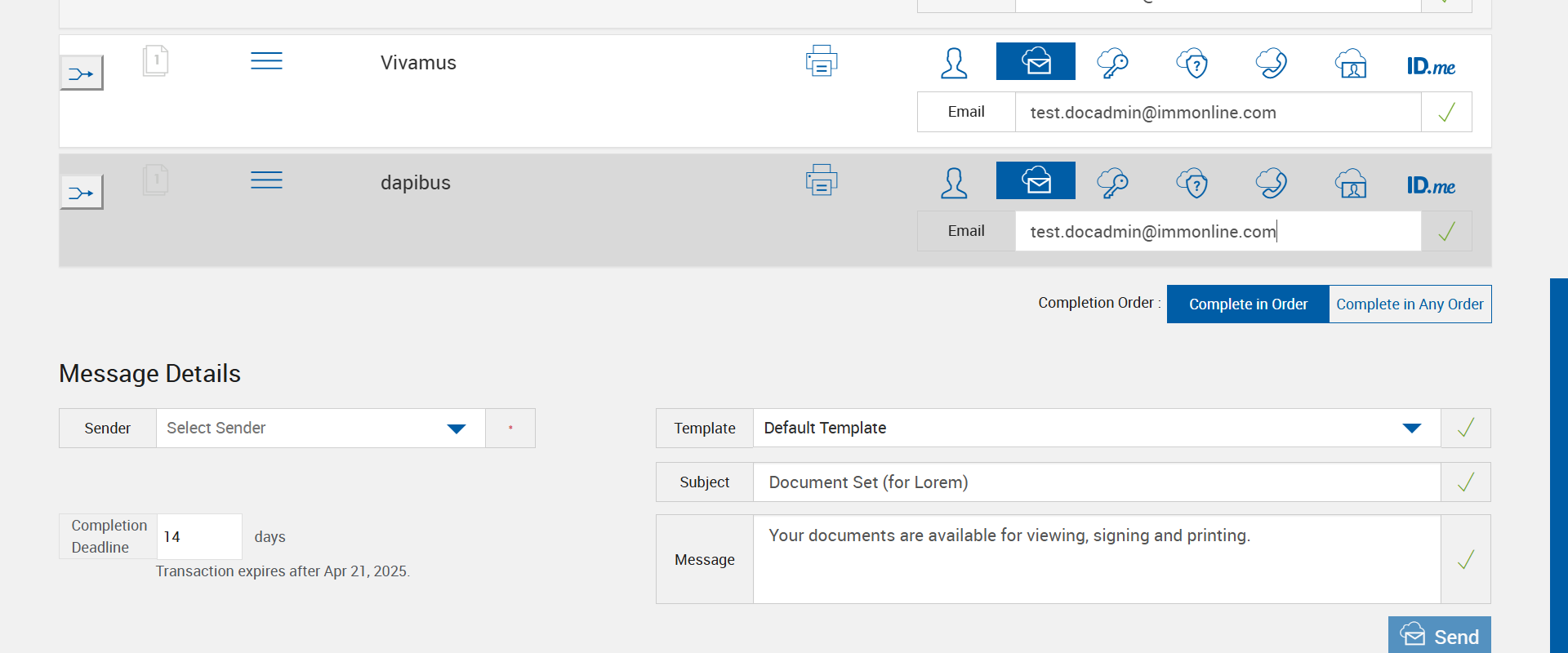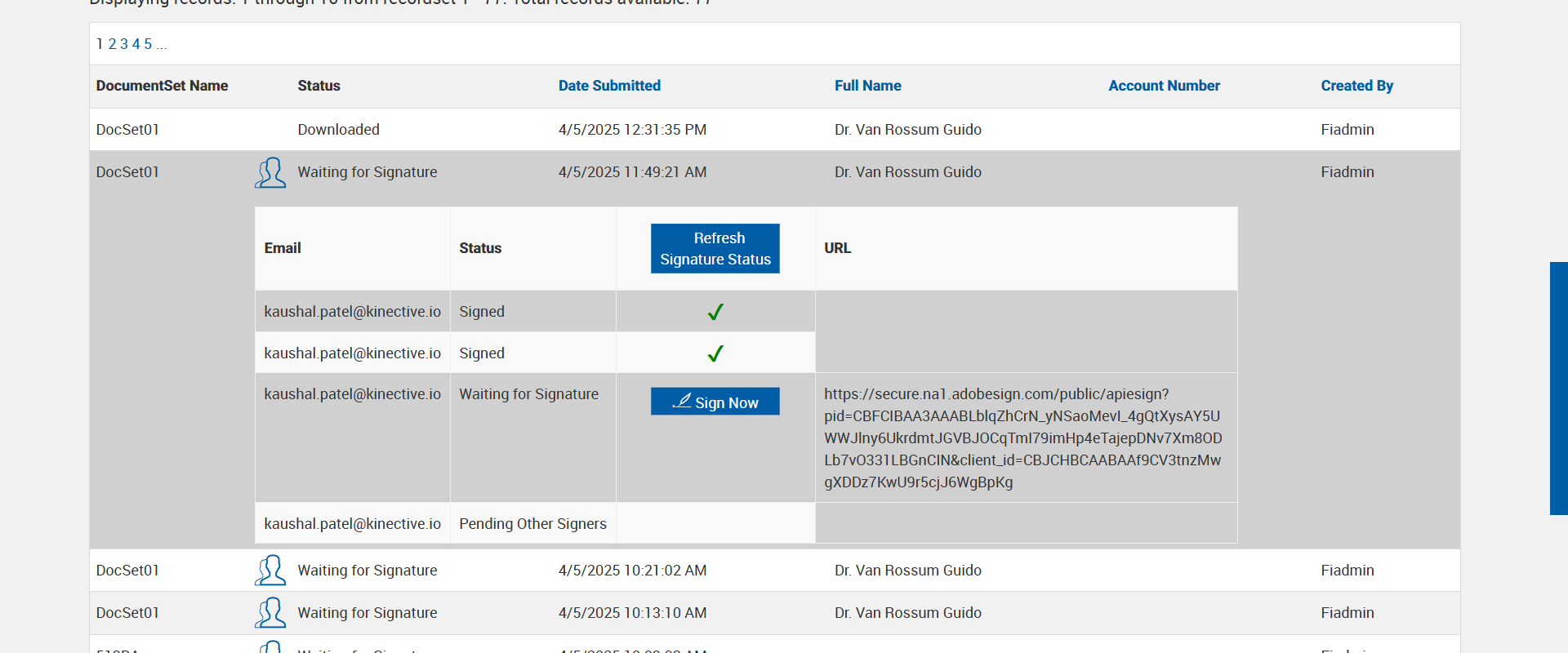 Expected: Verify green tick-mark displayed for first two parties in 'Remote Signautre Status Report' page
