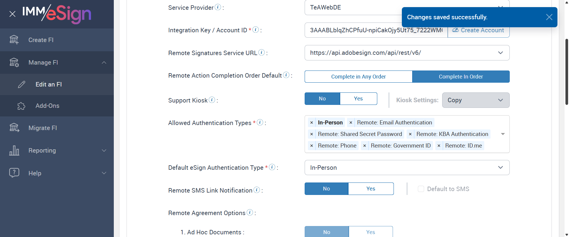 Successfully navigated to 'Manage FI' page [ScreenShot]