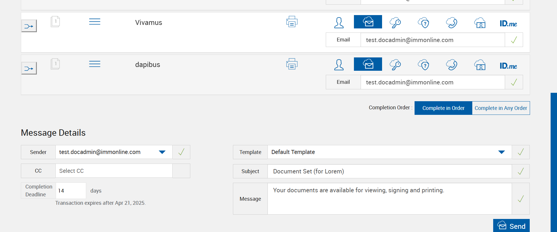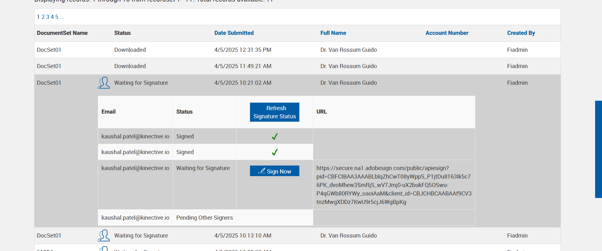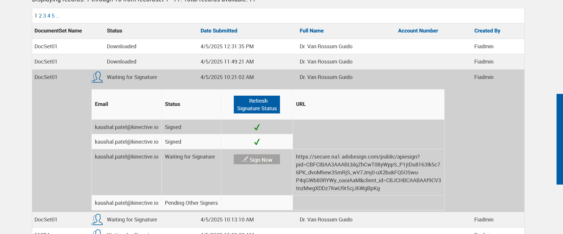 Expected: Verify green tick-mark displayed for first two parties in 'Remote Signautre Status Report' page