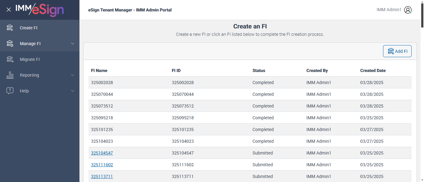 Successfully navigated to 'Manage FI' page [ScreenShot]