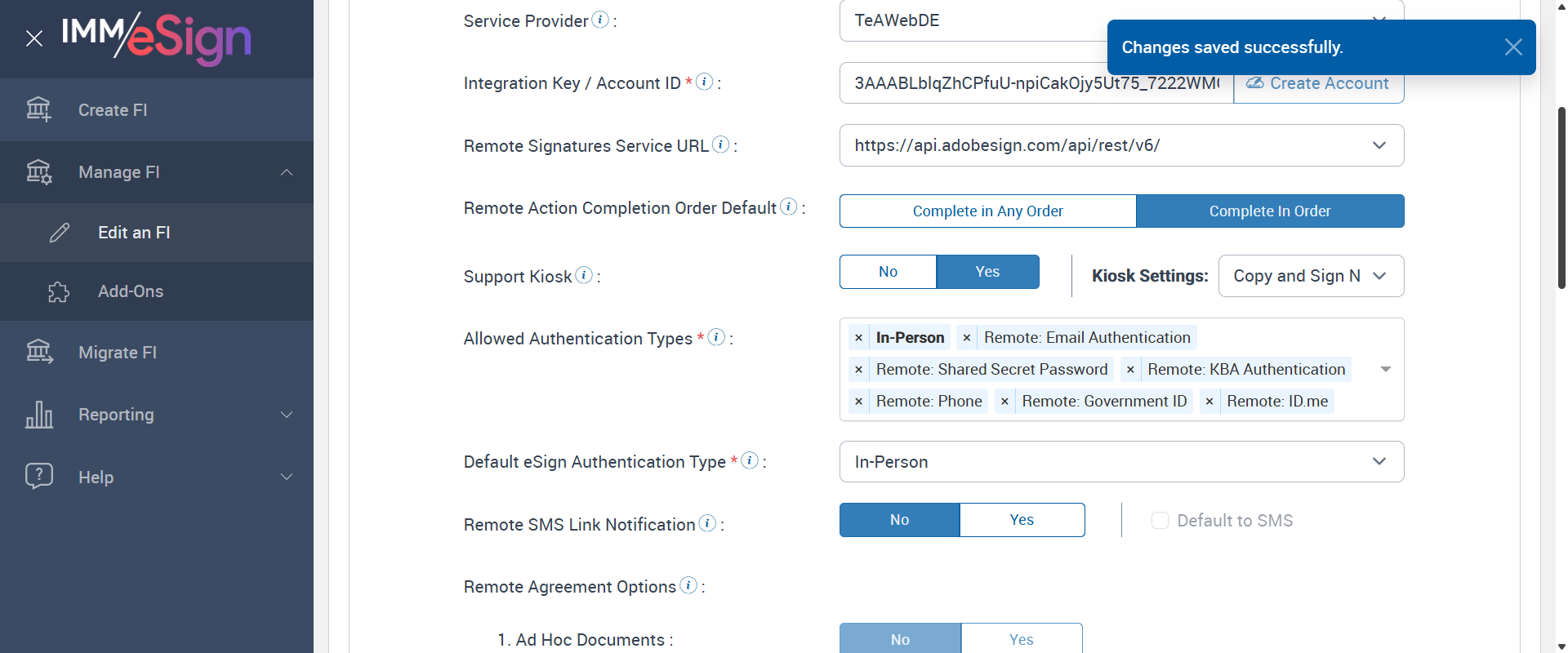 Successfully navigated to 'Manage FI' page [ScreenShot]