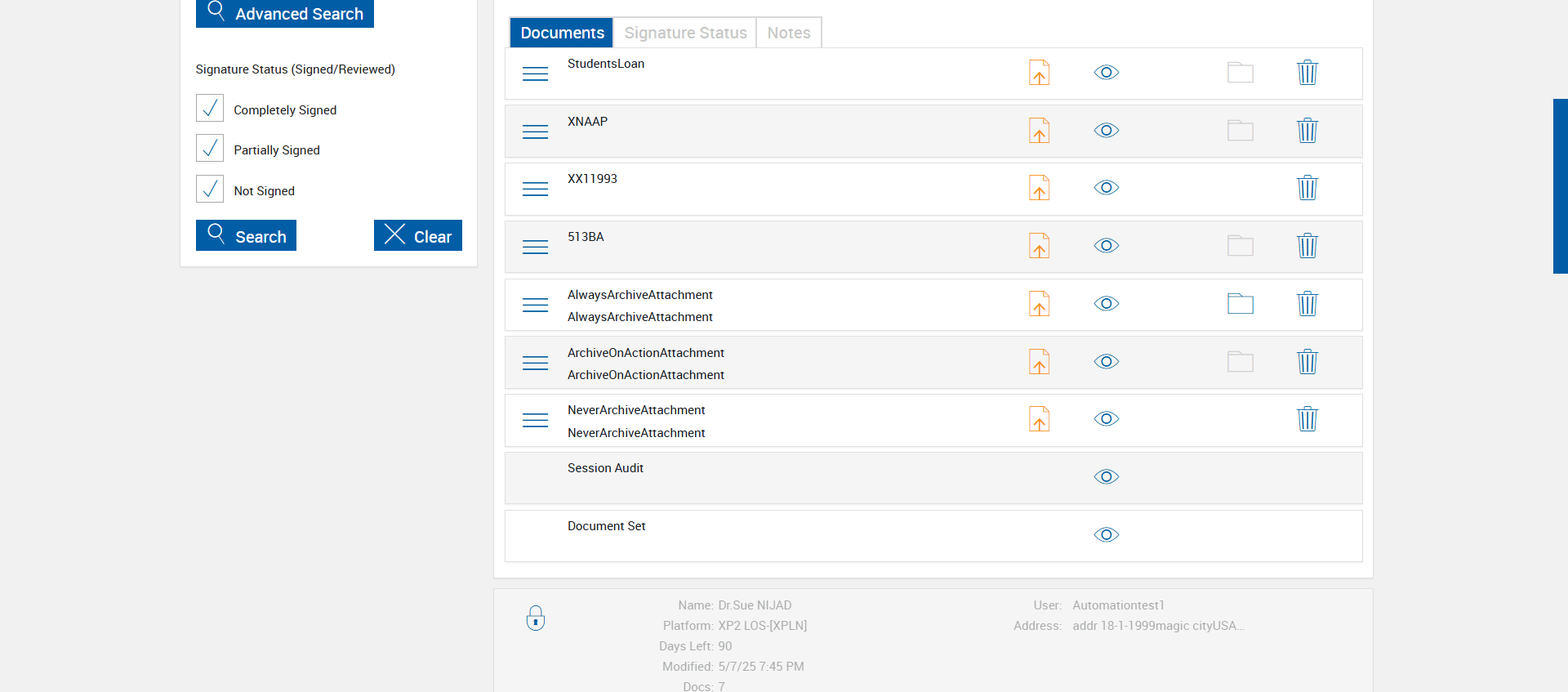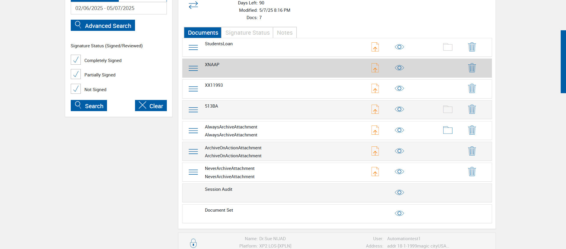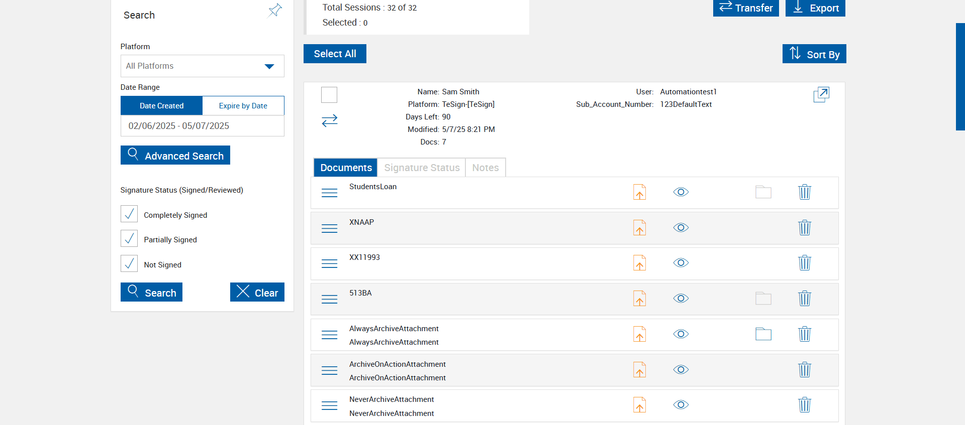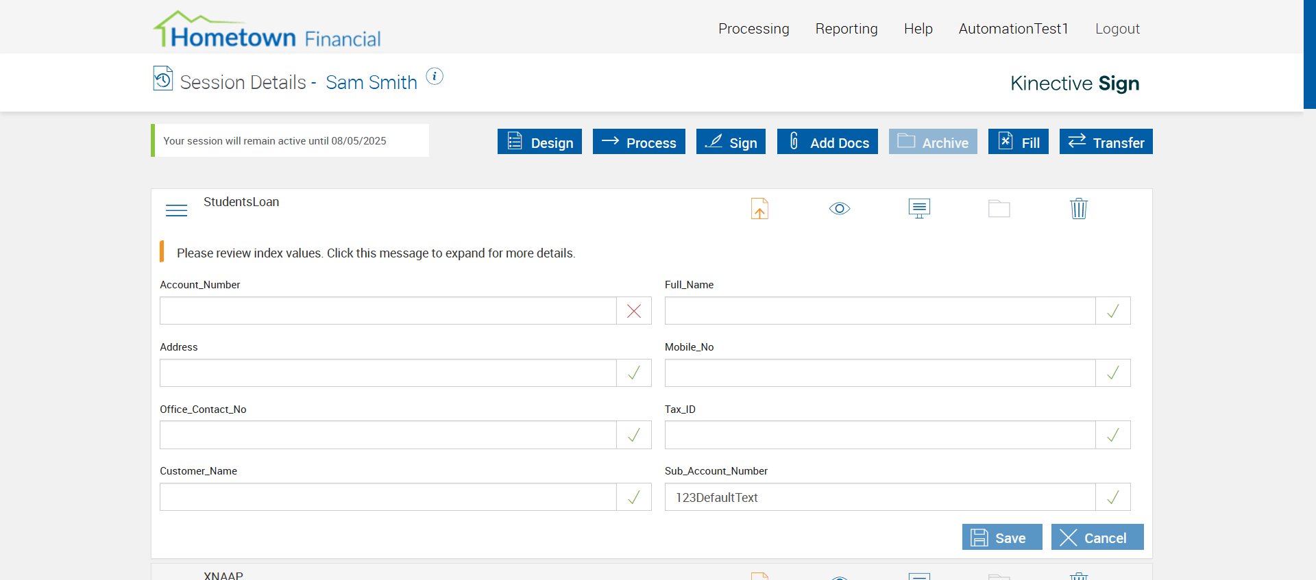 | {Tenant_URL=, EditFullName=, Email=, Platform=TeSign-[TeSign], IsPlusFI=FALSE, ShortName=AlwaysArchiveAttachment,ArchiveOnActionAttachment,NeverArchiveAttachment, PartyName=Jane Smith, PartiesToView=, AttachmentName=AlwaysArchiveAttachment,ArchiveOnActionAttachment,NeverArchiveAttachment, ReceivedFromNames=, TextField=, ArchiveOptions=Attach01,Attach02,Attach03,Attach04, DocumentName=LOAN_APPLICATION, Dropdownvalues=, toggleStatus=, Workflow=SignatureStatus, AttachmentTypeOption=AlwaysArchiveAttachment,ArchiveOnActionAttachment,NeverArchiveAttachment, NumOfAttachments=, Folderpath=, NameDescription=AlwaysArchiveAttachment,ArchiveOnActionAttachment,NeverArchiveAttachment, Export_Values=, UserType=, Tenant_User=, Group=, Description=verify Process Session With Do Not Archive Options in Search Active Sessions Page, Message=, FileName=, EditShortName=, Phone_Number=, Step Name=, Filepath=src/main/resources/testdata/files/documentRTS/Students Loan.pdf,src/main/resources/testdata/files/documentRTS/XNAAP.pdf,src/main/resources/testdata/files/documentRTS/XX11993.pdf,src/main/resources/testdata/files/documentRTS/513BA.pdf, DocumentPermission=, TestID=verifyProcessSessionWithDoNotArchiveOptionsinSearchActiveSessionsPage, FItype=, Required=, IndexSource=StudentsLoan,XNAAP,XX11993, Document Names=, Inbox=, Password=iMM@2022, Path=src/main/resources/testdata/files/DoNotArchive.Zip, Tenant_Password=, UserName=, Comments=, Email_Id=, Index_Field_Name=, Sender_Email_Id=, FI_ID=qaesignfi, Vendor=None,None,None, From=, TemplatePermission=, Subject=, Date=, Response=, Type=, AttachmentPath=src/main/resources/testdata/files/Attachments/Delic.pdf,src/main/resources/testdata/files/Attachments/paystub.pdf,src/main/resources/testdata/files/Attachments/UtilityBillPRIMARY1.pdf, Username=cuadmin@immtestcu.onmicrosoft.com, FullName=StudentsLoan,XNAAP,XX11993,513BA, EditNameDescription=, ErrorMessage=, Export_Fields=Attach01,Attach02,Attach03,Attach04} |