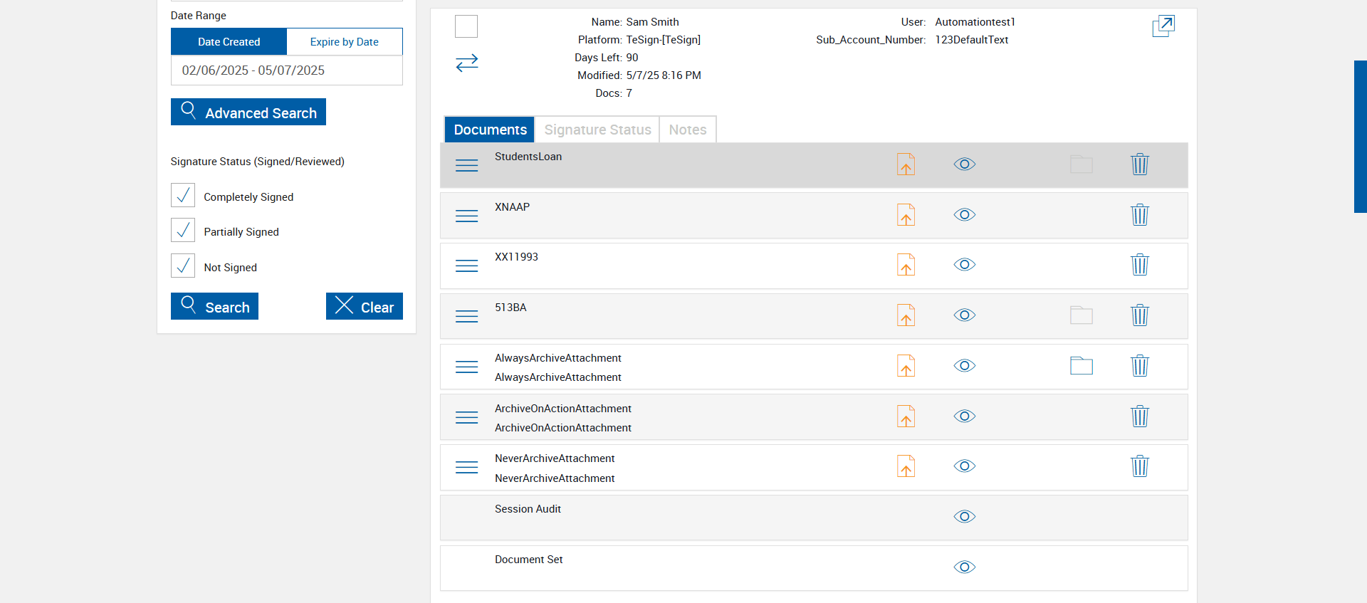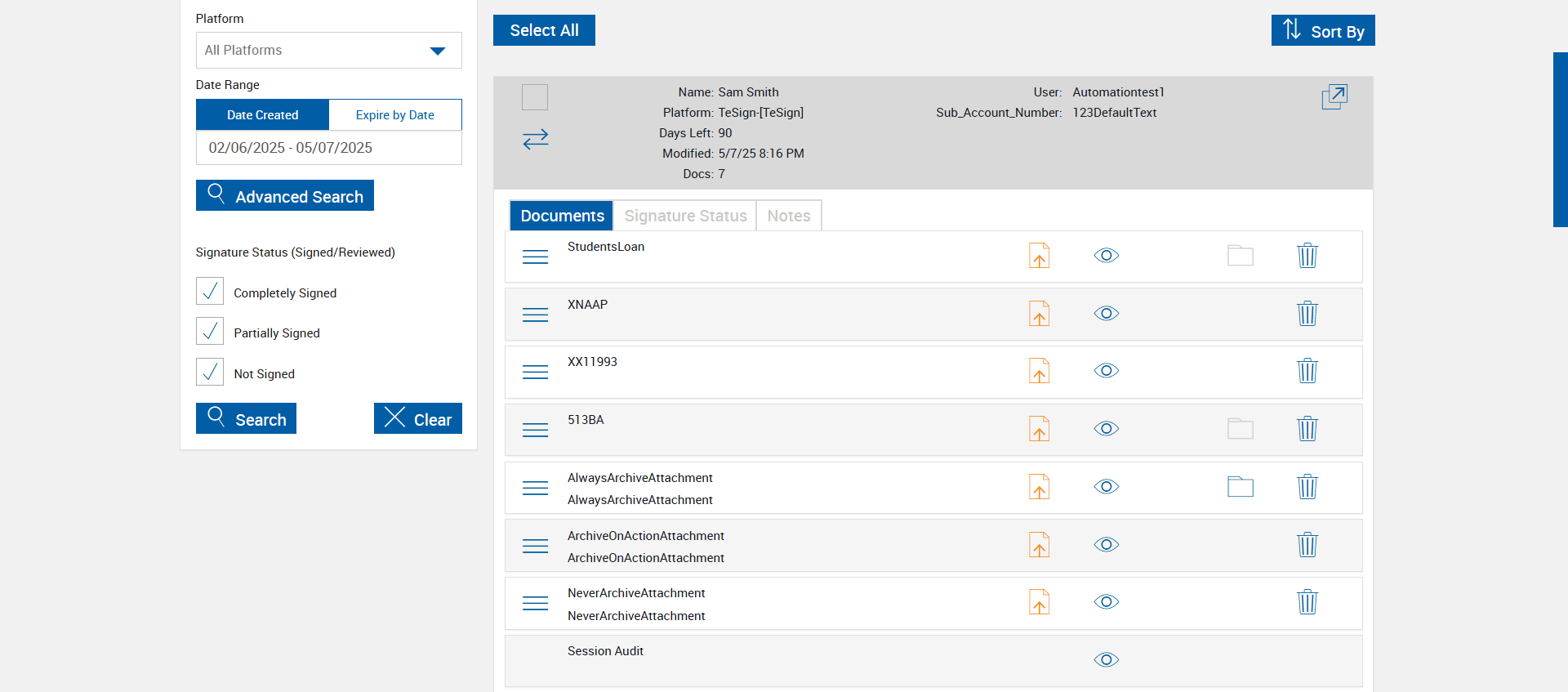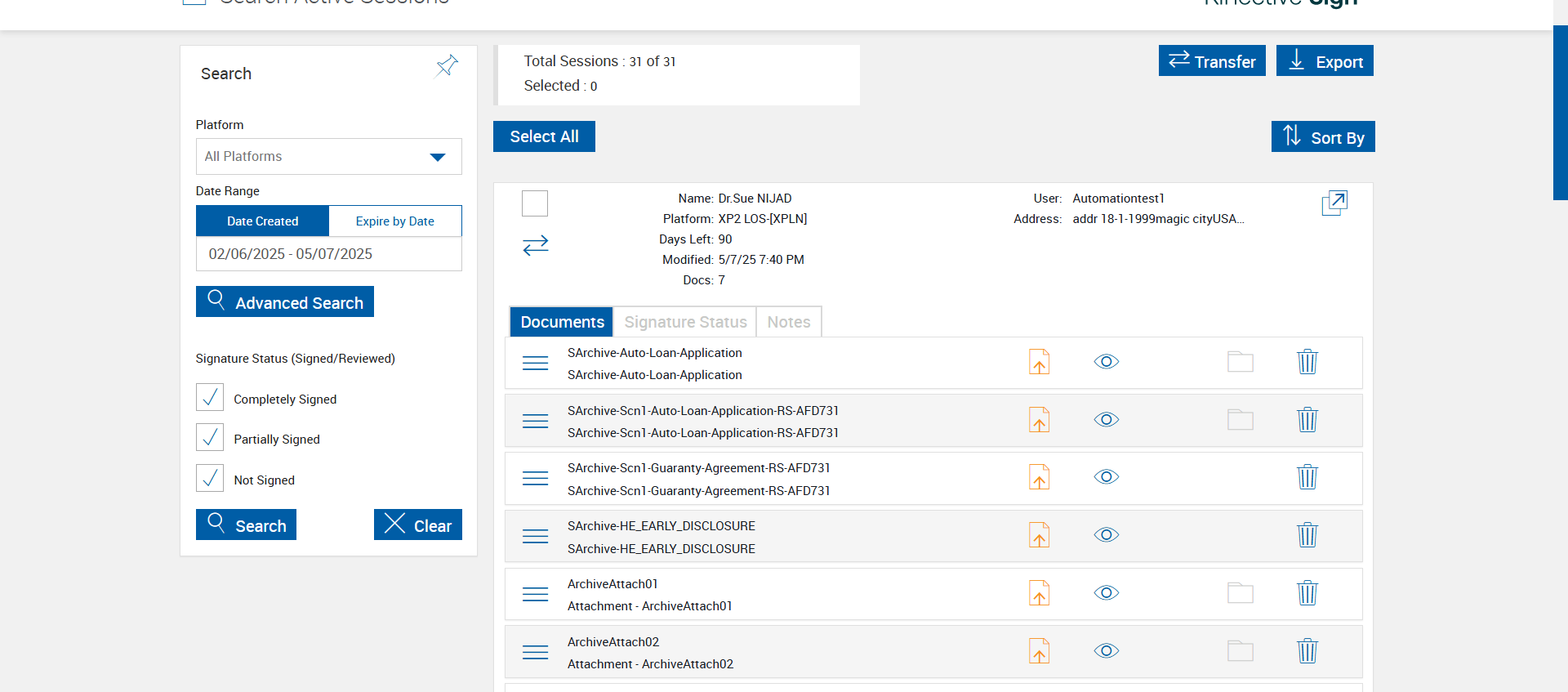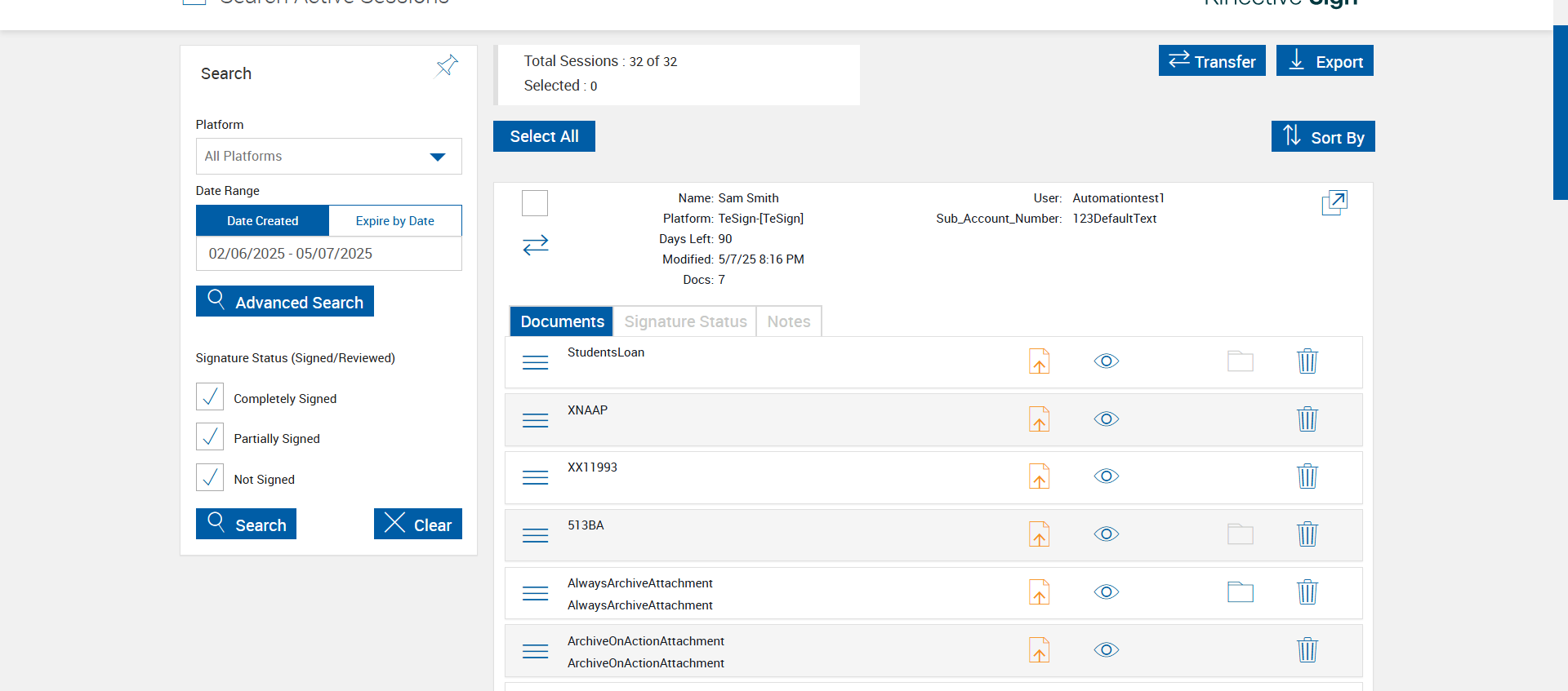 | {Tenant_URL=, EditFullName=, Email=, Platform=TeSign-[TeSign], IsPlusFI=FALSE, ShortName=AlwaysArchiveAttachment,ArchiveOnActionAttachment,NeverArchiveAttachment, PartyName=Jane Smith, PartiesToView=, AttachmentName=AlwaysArchiveAttachment,ArchiveOnActionAttachment,NeverArchiveAttachment, ReceivedFromNames=, TextField=, ArchiveOptions=Attach01,Attach02,Attach03,Attach04, DocumentName=LOAN_APPLICATION, Dropdownvalues=, toggleStatus=, Workflow=SignatureStatus, AttachmentTypeOption=AlwaysArchiveAttachment,ArchiveOnActionAttachment,NeverArchiveAttachment, NumOfAttachments=, Folderpath=, NameDescription=AlwaysArchiveAttachment,ArchiveOnActionAttachment,NeverArchiveAttachment, Export_Values=, UserType=, Tenant_User=, Group=, Description=verify Process Session With Do Not Archive Options in Search Active Sessions Page, Message=, FileName=, EditShortName=, Phone_Number=, Step Name=, Filepath=src/main/resources/testdata/files/documentRTS/Students Loan.pdf,src/main/resources/testdata/files/documentRTS/XNAAP.pdf,src/main/resources/testdata/files/documentRTS/XX11993.pdf,src/main/resources/testdata/files/documentRTS/513BA.pdf, DocumentPermission=, TestID=verifyProcessSessionWithDoNotArchiveOptionsinSearchActiveSessionsPage, FItype=, Required=, IndexSource=StudentsLoan,XNAAP,XX11993, Document Names=, Inbox=, Password=iMM@2022, Path=src/main/resources/testdata/files/DoNotArchive.Zip, Tenant_Password=, UserName=, Comments=, Email_Id=, Index_Field_Name=, Sender_Email_Id=, FI_ID=qaesignfi, Vendor=None,None,None, From=, TemplatePermission=, Subject=, Date=, Response=, Type=, AttachmentPath=src/main/resources/testdata/files/Attachments/Delic.pdf,src/main/resources/testdata/files/Attachments/paystub.pdf,src/main/resources/testdata/files/Attachments/UtilityBillPRIMARY1.pdf, Username=cuadmin@immtestcu.onmicrosoft.com, FullName=StudentsLoan,XNAAP,XX11993,513BA, EditNameDescription=, ErrorMessage=, Export_Fields=Attach01,Attach02,Attach03,Attach04} |