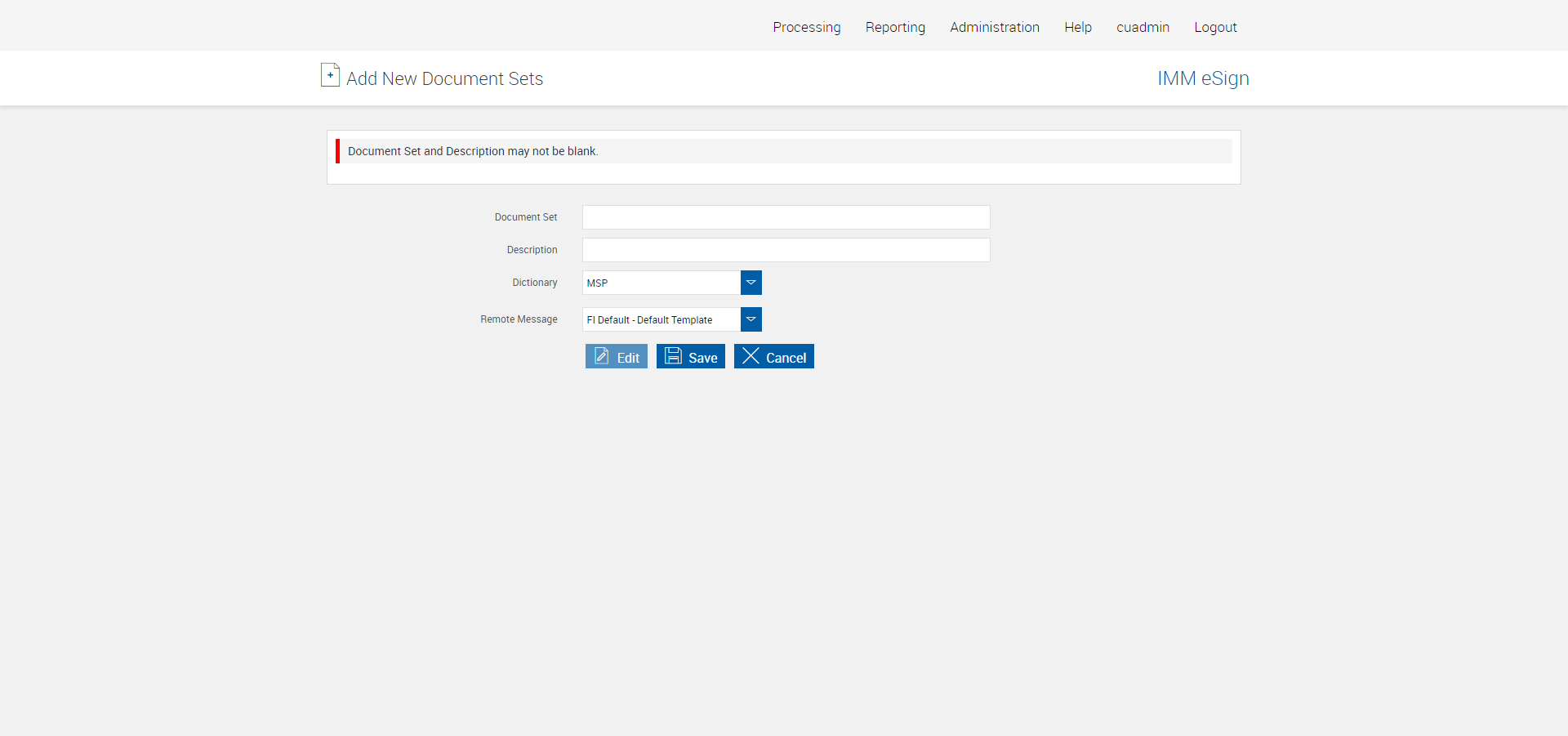 | 01:01:29 PM | Navigated to 'Document Set Maintenance' page | |