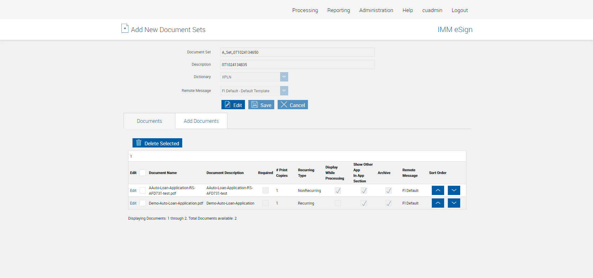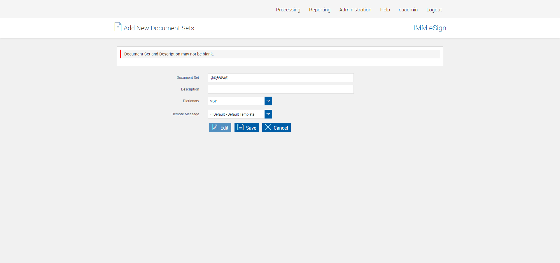 Actual(Passed): Message - 'Document Set and Description may not be blank' is displayed when Description is blank[ScreenShot]
