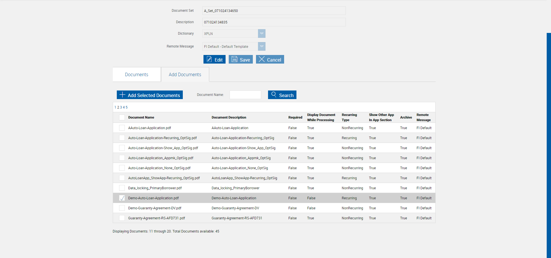 Expected: Demo-Auto-Loan-Application.pdf must be selected