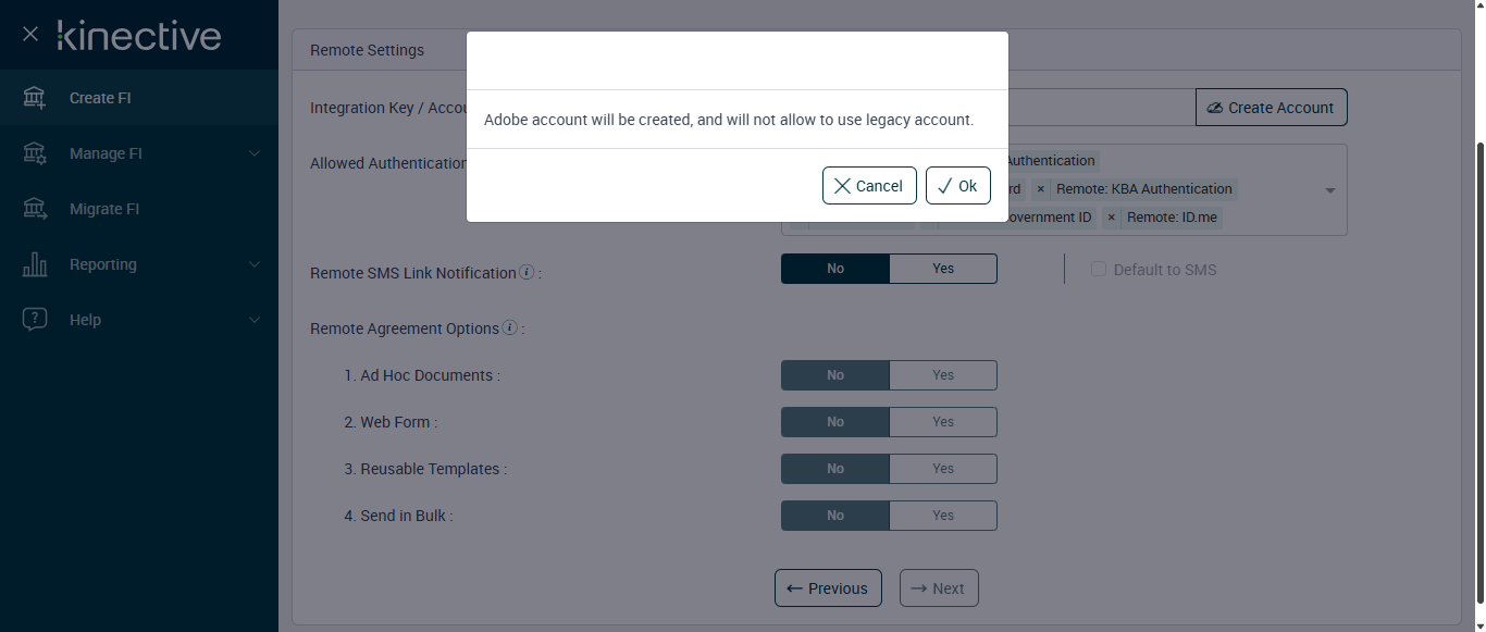 Succesfully verified Popup message- Adobe account will be created, and will not allow to use legacy account.