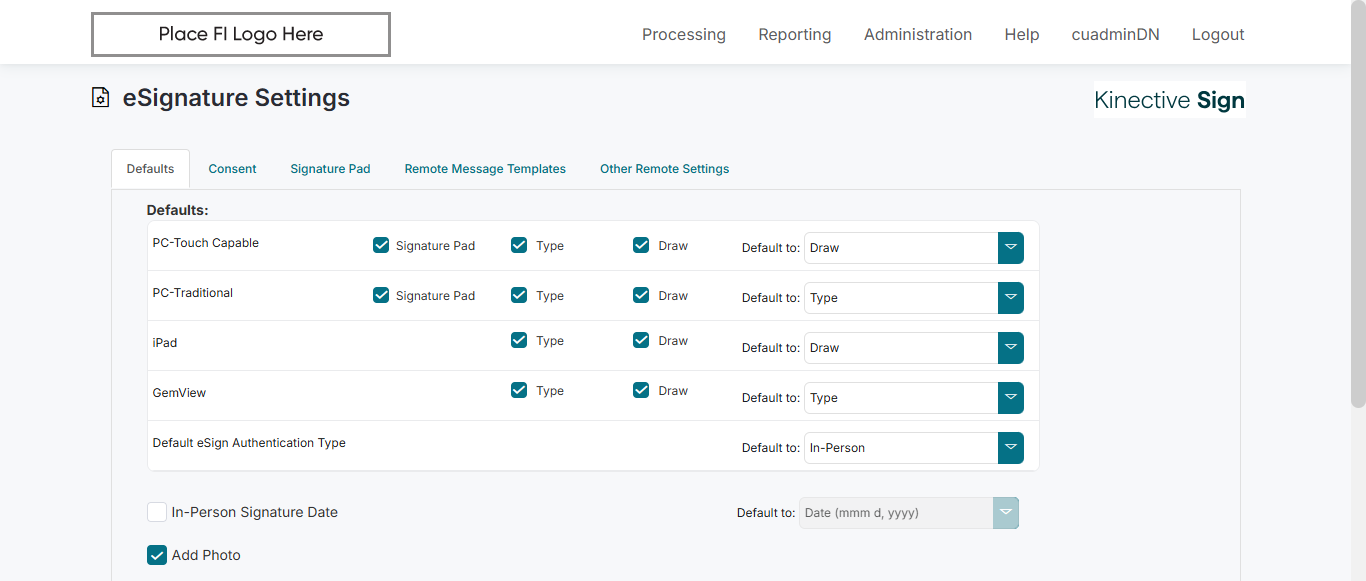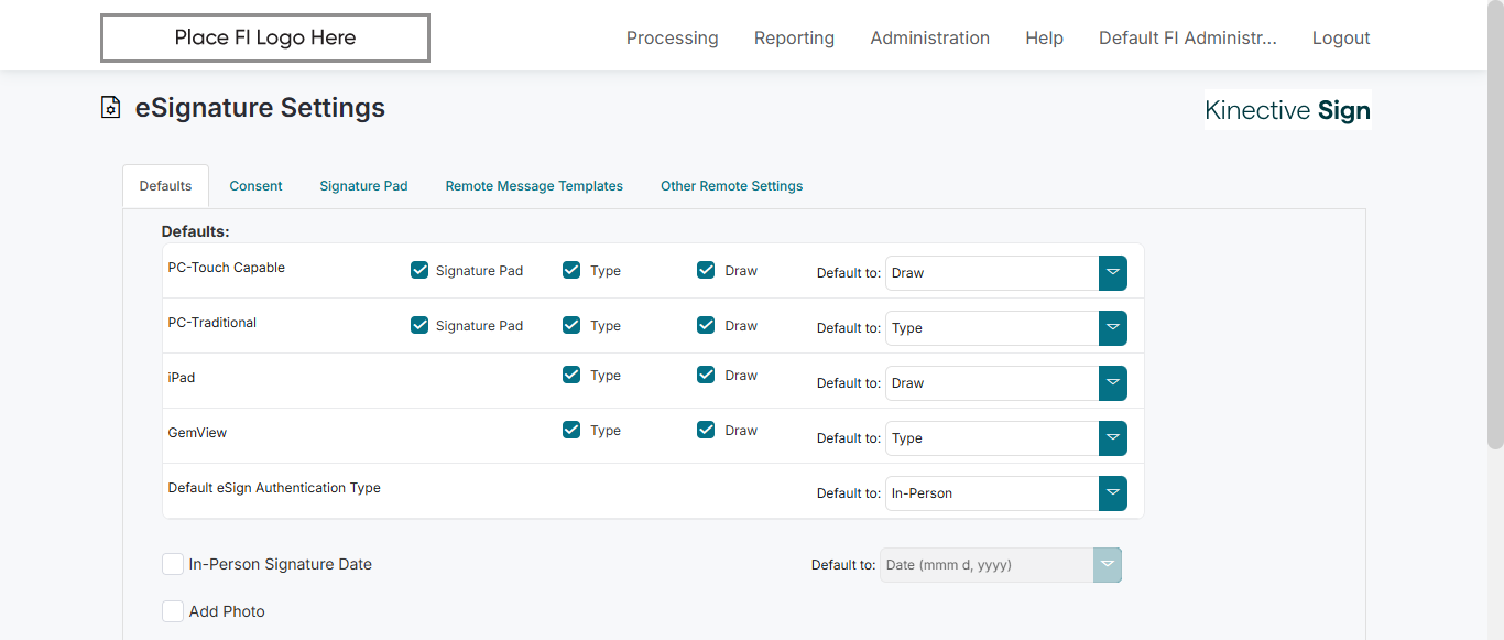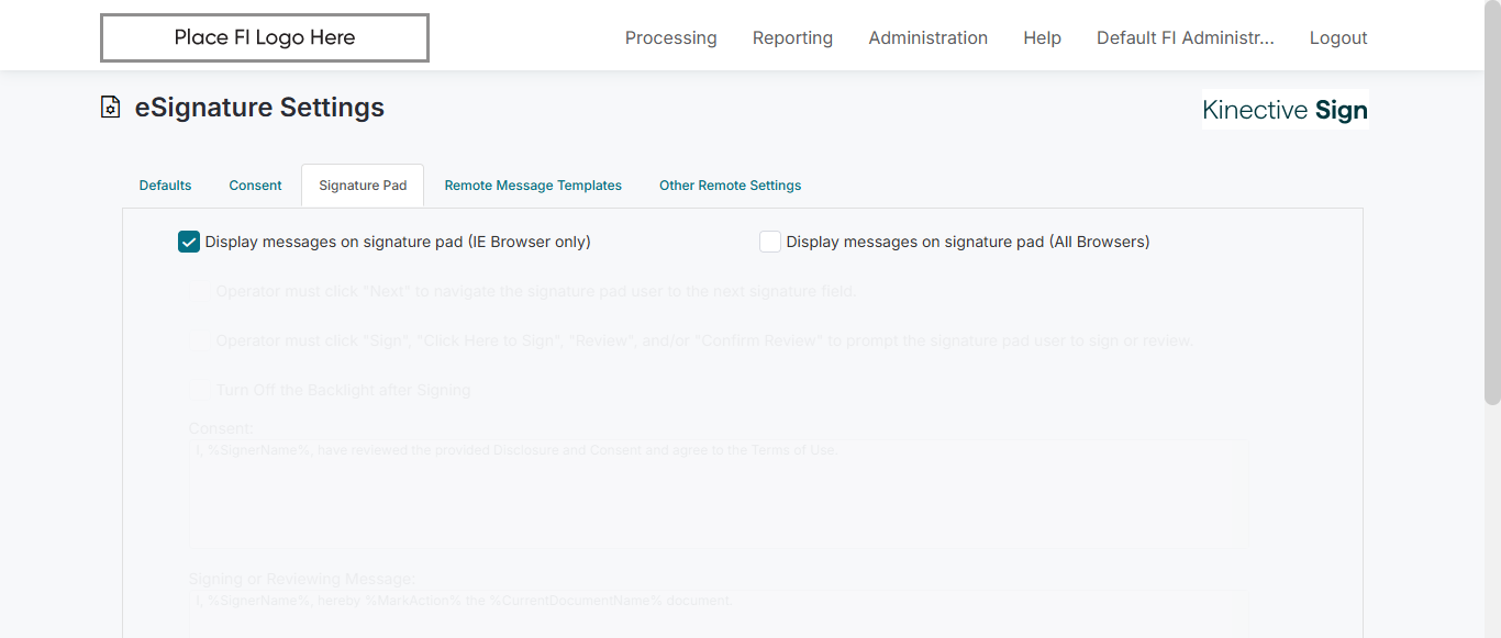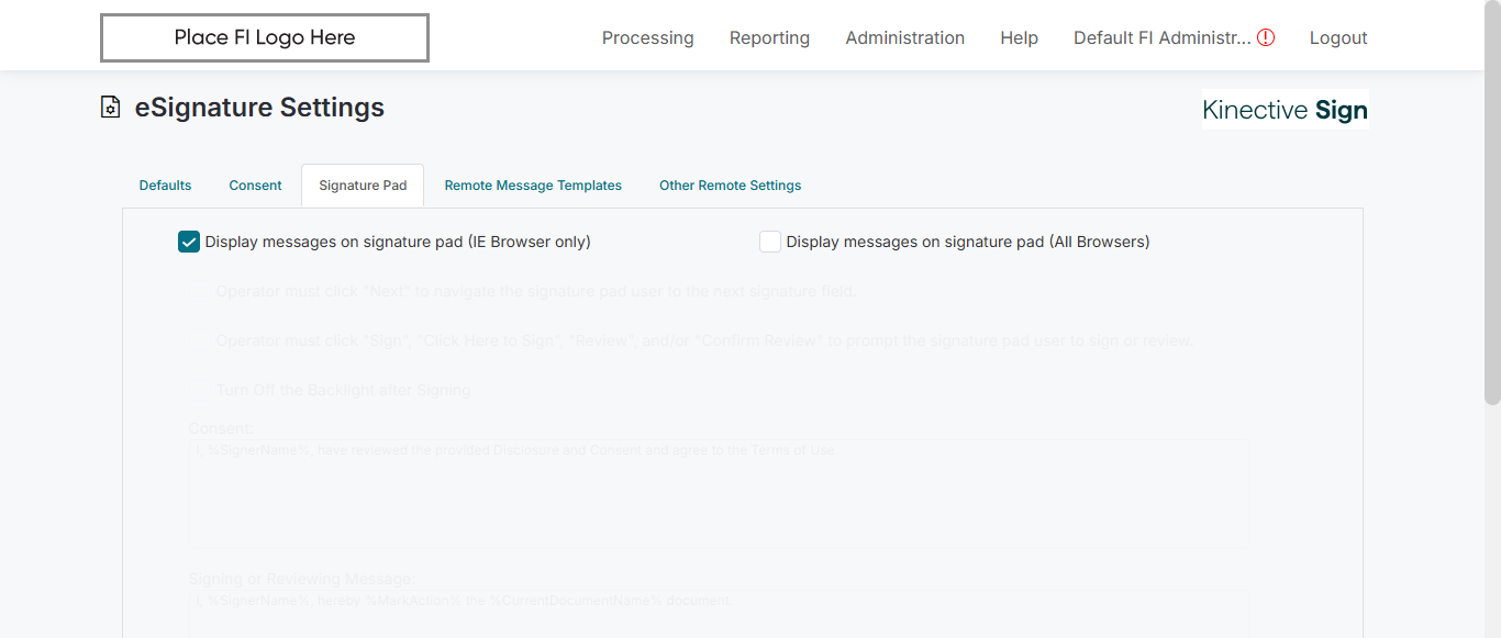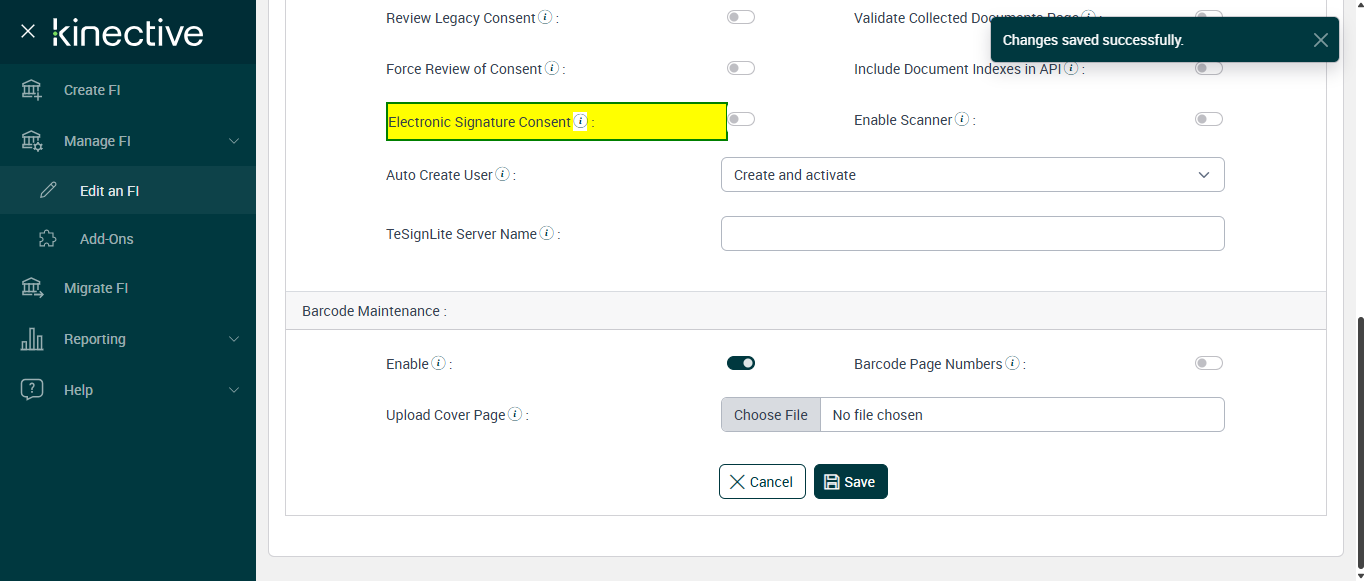 (verify Electronic Signature Consent in Other Settings Page Existing FI)