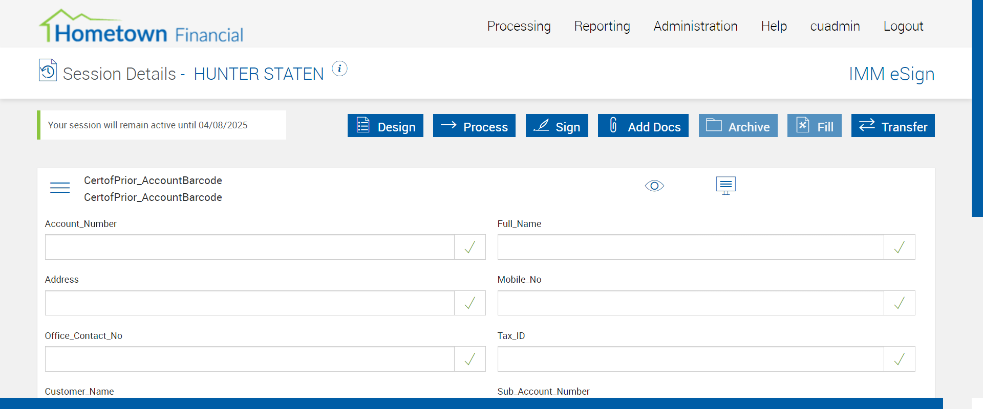 | 06:18:21 pm | Navigated to 'Index Field Maintenence' Page | |
