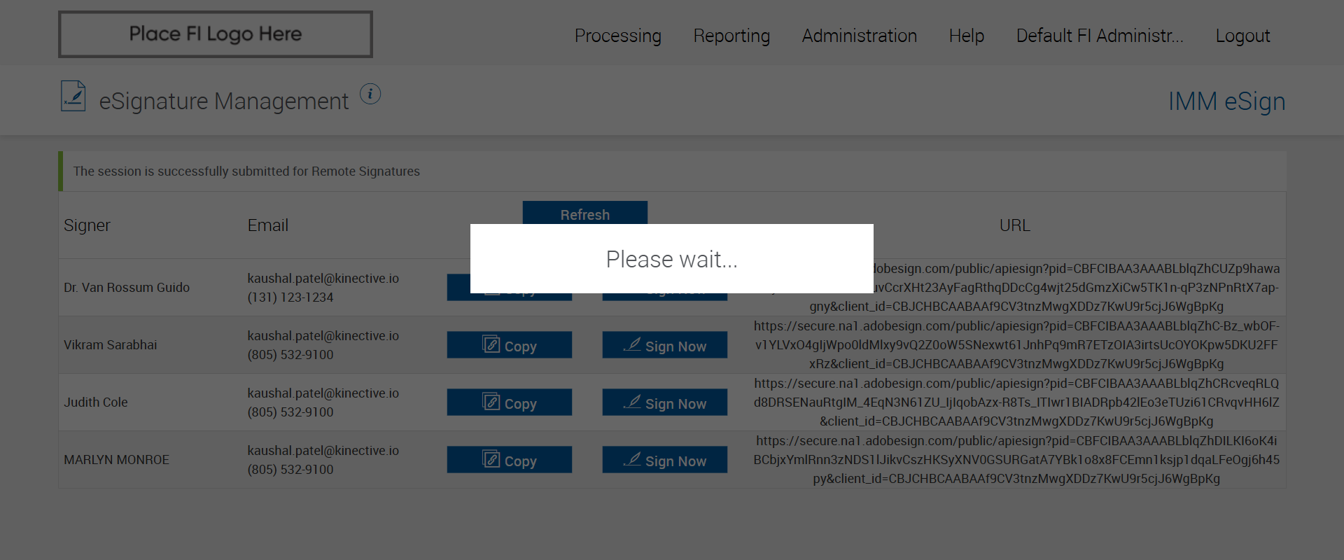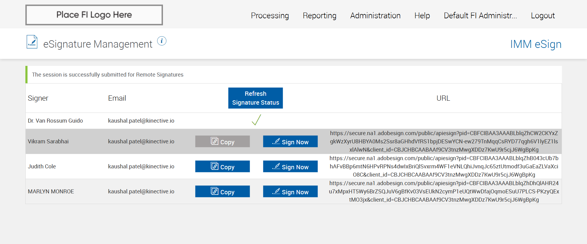 Actual(Passed): Verified 'Copy' and 'Sign Now' button displayed in eSignature Management page for the party - 2[ScreenShot]
