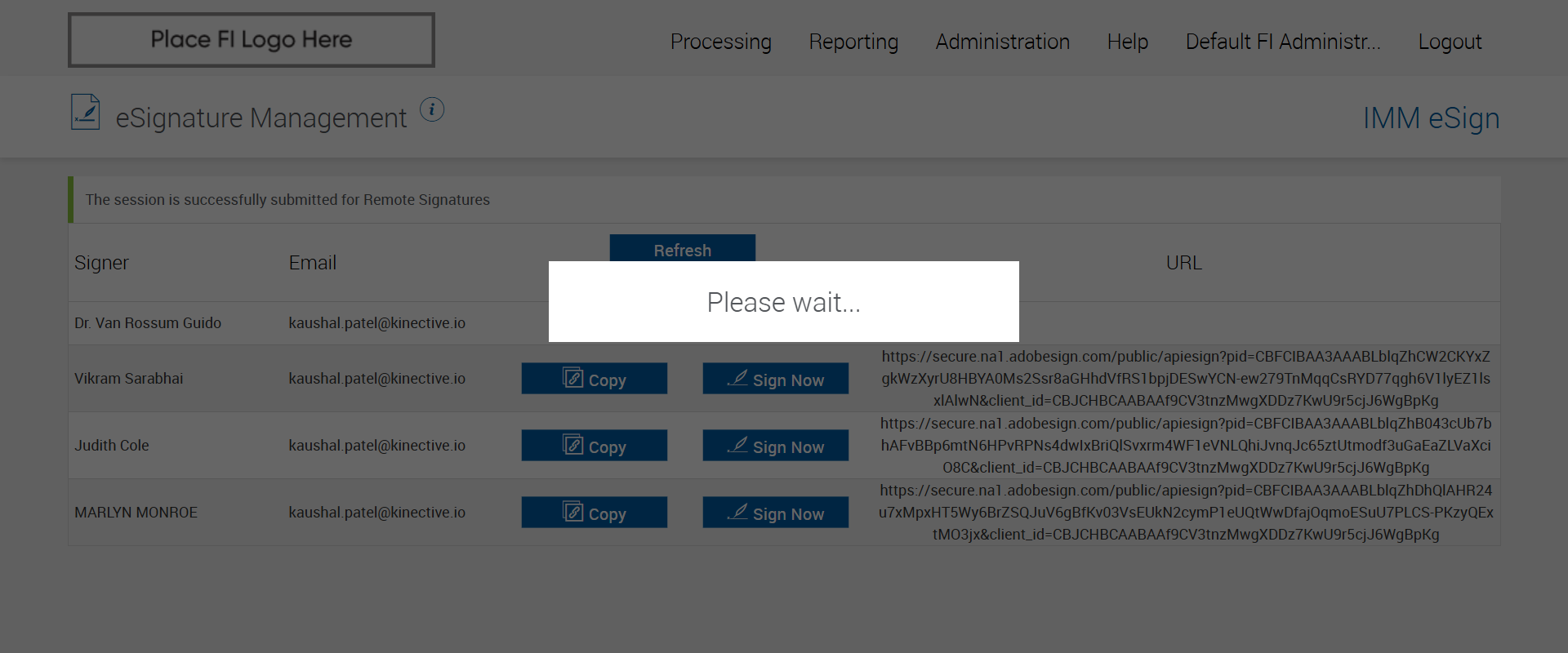 Actual(Passed): Verified 'Copy' and 'Sign Now' button displayed in eSignature Management page for the party - 1[ScreenShot]