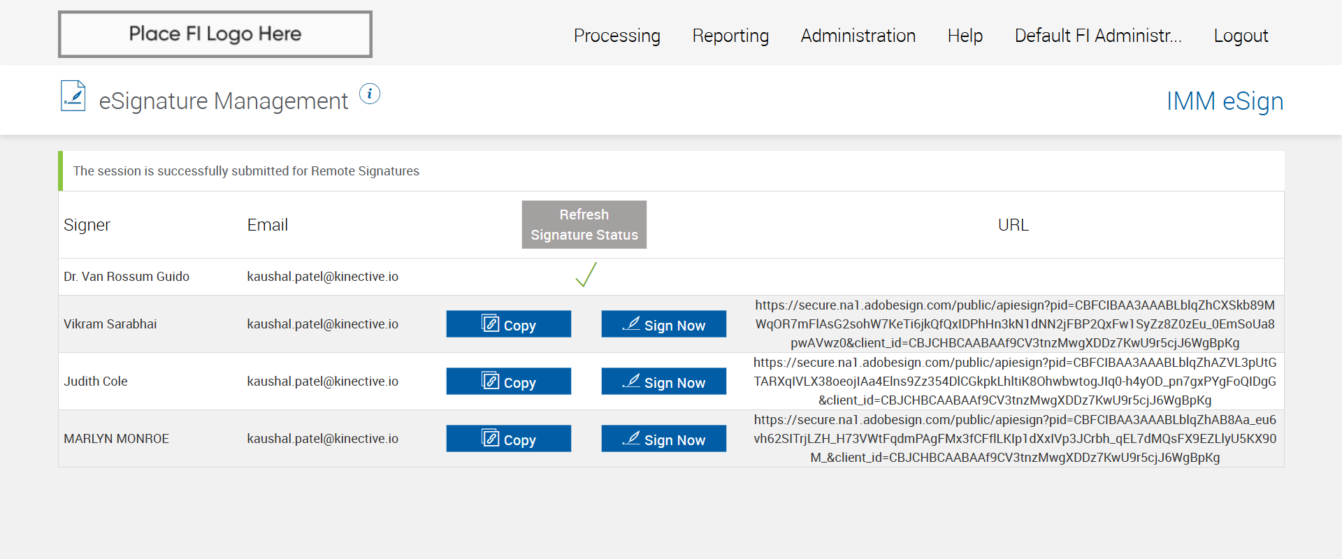 Successfully navigated to the 'eSignature Management' page [ScreenShot]