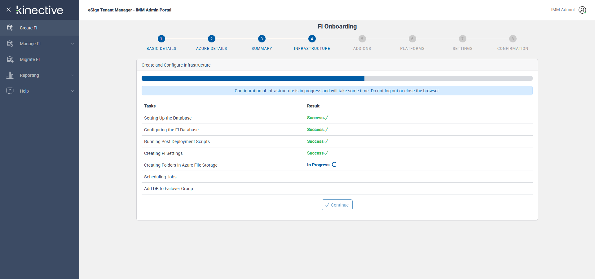 Successfully Configured 'Creating FI Settings'