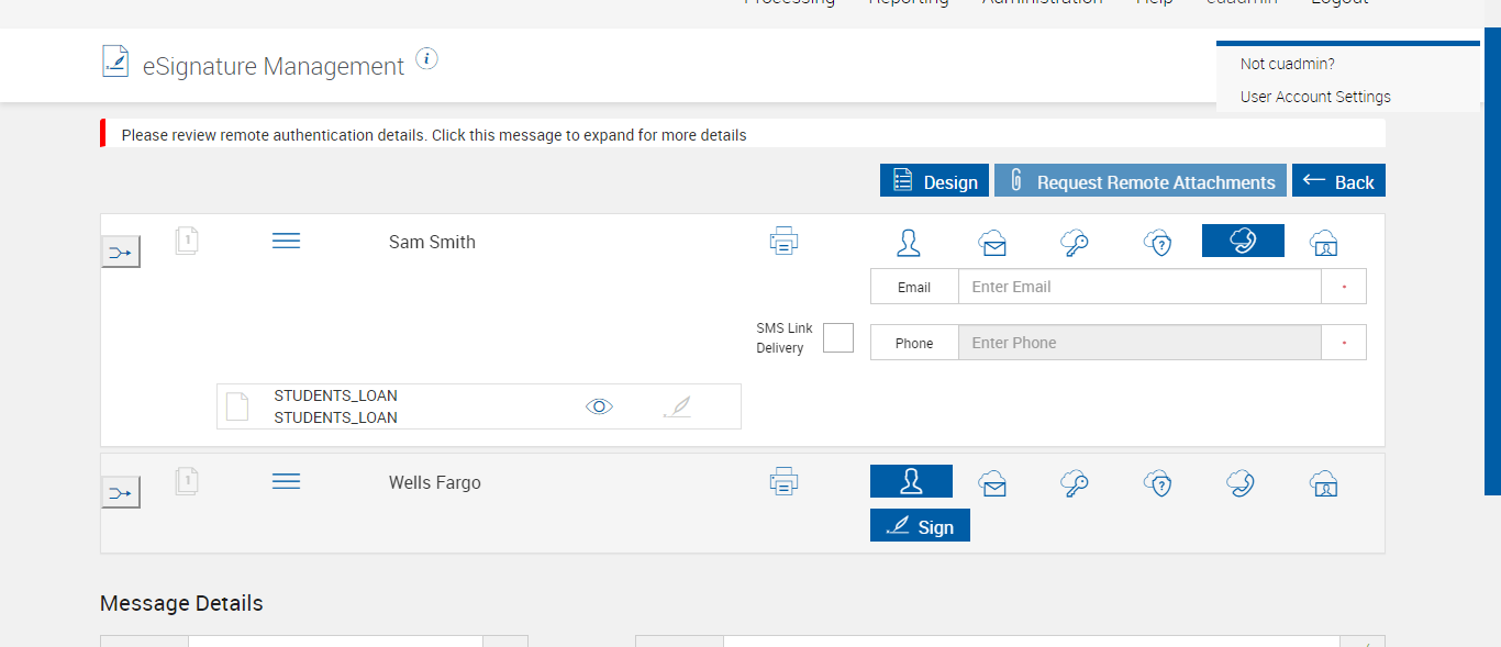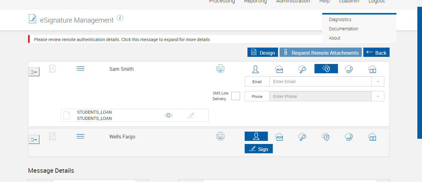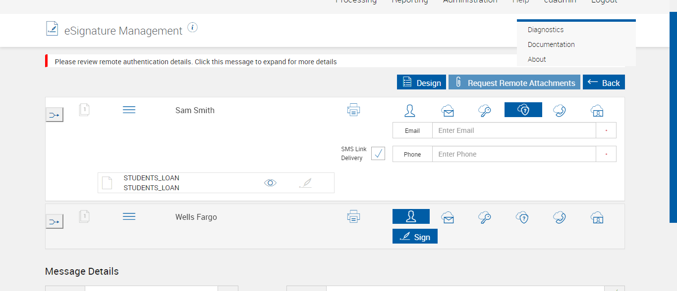 | 05:05:52 pm | Successfully verified SMS Link Delivery option is available for Password Authentication signing [ScreenShot] | |