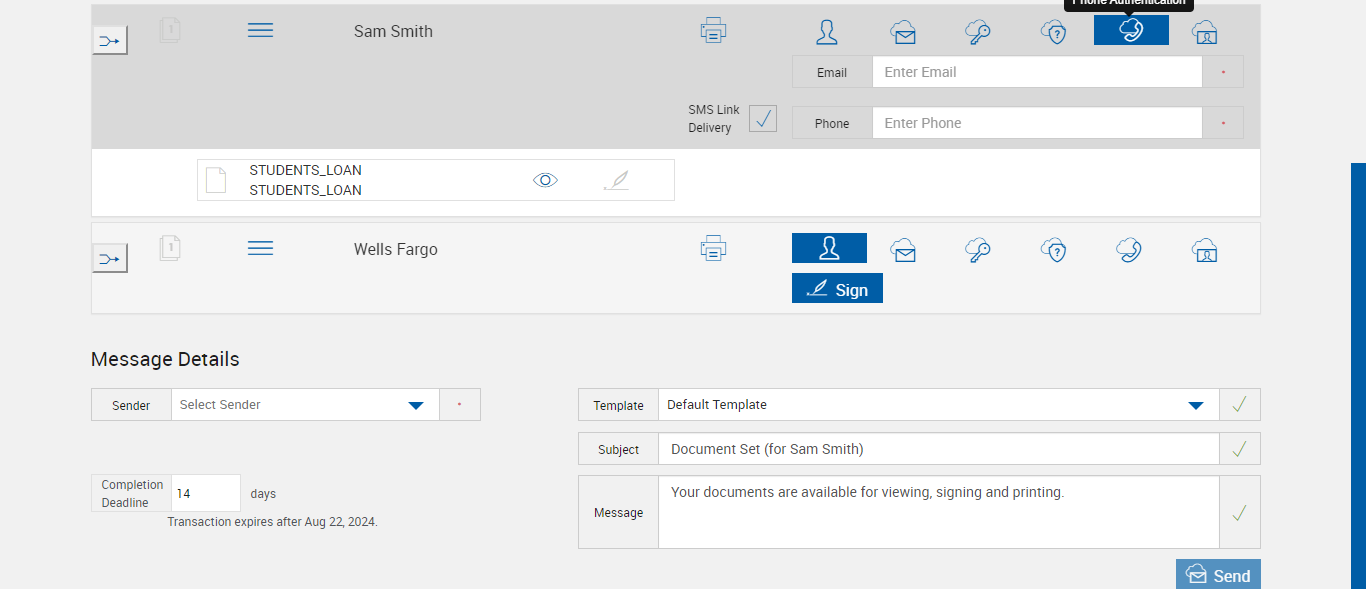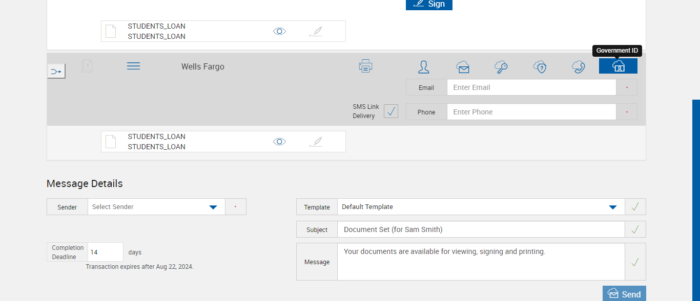| 05:26:32 pm | Successfully verified by default SMS Link Delivery checkbox is checked for GovernmentID signing [ScreenShot] | |