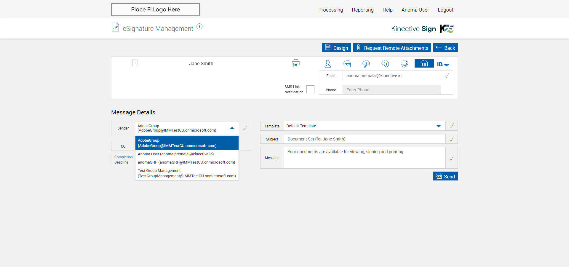 (verify Sender Email with Groupt Email In eSignature Management Page RTS)