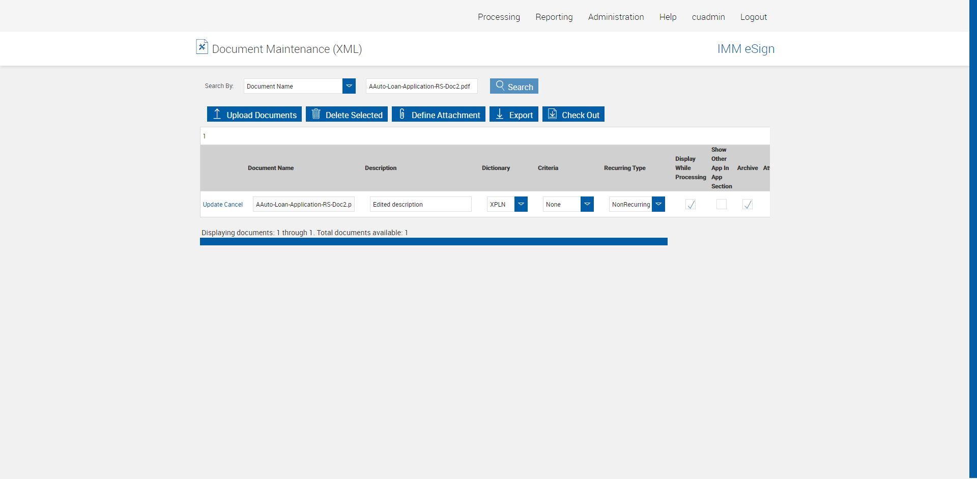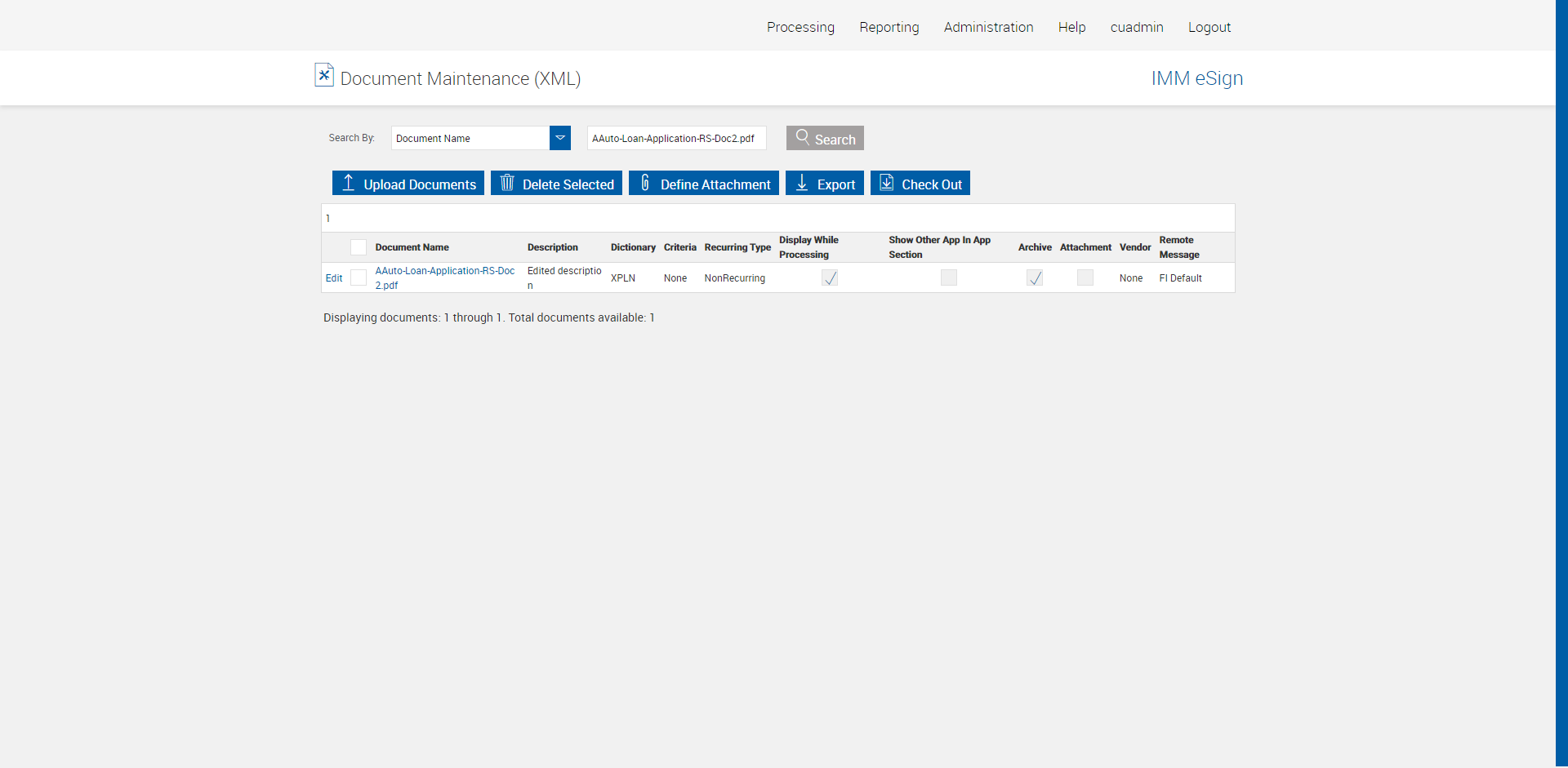 Expected: Changes Document Name : AAuto-Loan-Application-RS-Doc2.pdf Document Description : Edited description Should present