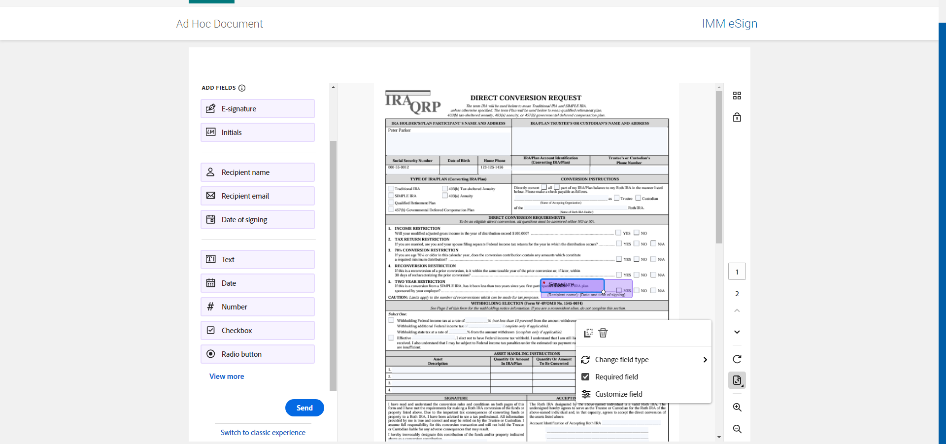 Signature field is displayed on the designer zone [ScreenShot] --- 09 Jan 14:37:00 371 - Page URL:: https://esignplusqa.immesign.com/teaasp/adobeview?viewname=compose