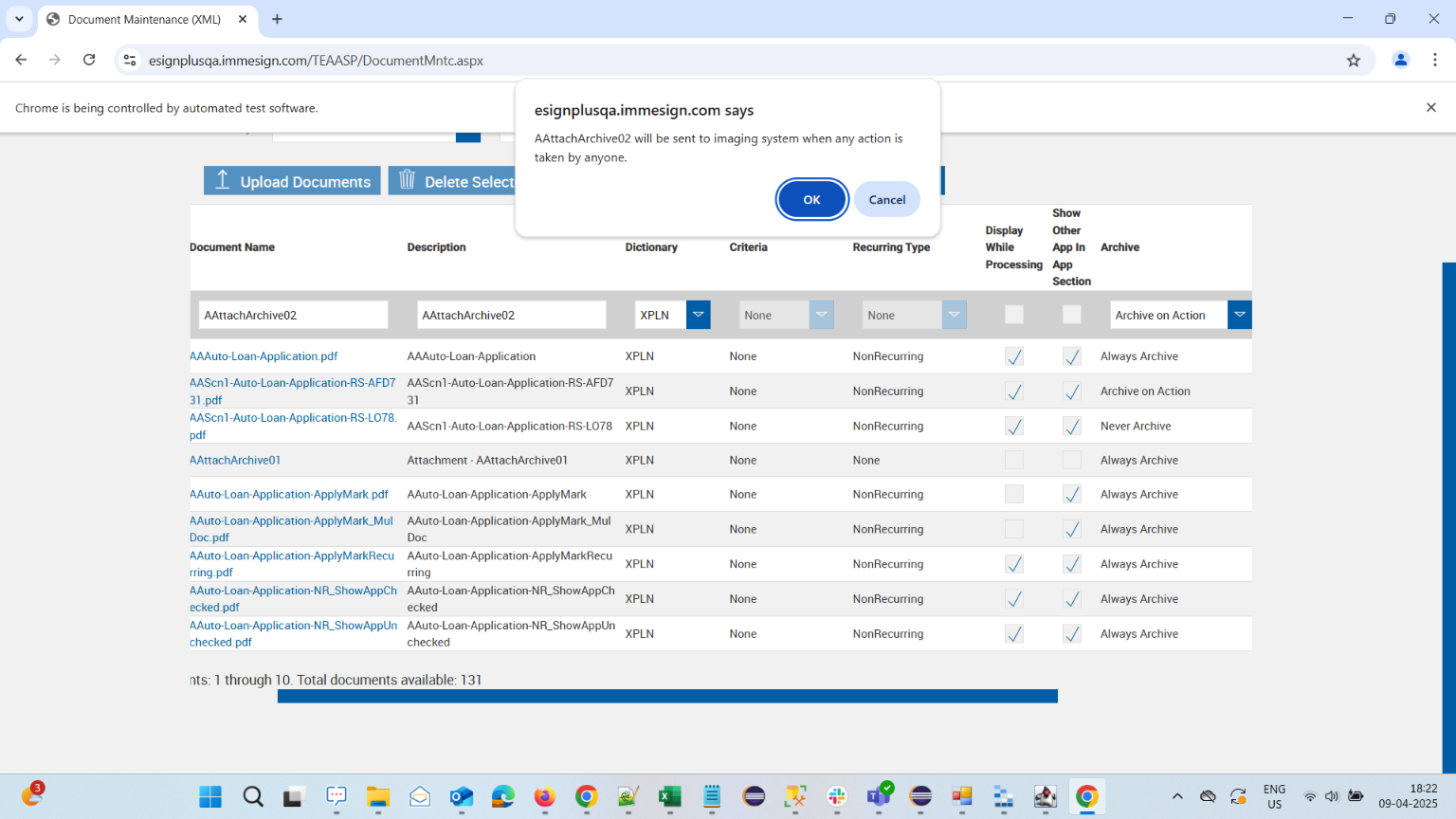 | {Description=verify Archive options are available in Document Maintenance XML Pages, FI=AutoePlus, AttachmentDescription=AAttachArchive01,AAttachArchive02,AAttachArchive03, Condition_Edit=, DocumentName_Edit=AAAuto-Loan-Application.pdf,AAScn1-Auto-Loan-Application-RS-AFD731.pdf,AAScn1-Auto-Loan-Application-RS-LO78.pdf, SearchKeyword=, TestID=VerifyArchiveOptionsforDocumentMaintenanceXML, docset_doc2=, docset_doc1=, filepath=src/main/resources/testdata/files/configuringfi/AAAuto-Loan-Application.pdf,src/main/resources/testdata/files/configuringfi/AAScn1-Auto-Loan-Application-RS-AFD731.pdf,src/main/resources/testdata/files/configuringfi/AAScn1-Auto-Loan-Application-RS-LO78.pdf, DocumentDescription_Edit=, PartiesToView=, AttachmentName=AAttachArchive01,AAttachArchive02,AAttachArchive03, FieldNametoSearch=, CriteriaName=, Template_Description=, DocSetName=A_DocSet05, DocumentName=AAuto-Loan-Application-ApplyMark.pdf, Password=iMM@2022, DictionaryOption=XPLN, Condition=, CriteriaName_Edit=, Criteria_Description_Edit=, Template_Name=, KeepUnlock=, SearchDictionary=, Criteria_Description=, Template_Platform=, DocumentDescription=, Username=cuadmin@immtestcu.onmicrosoft.com} |