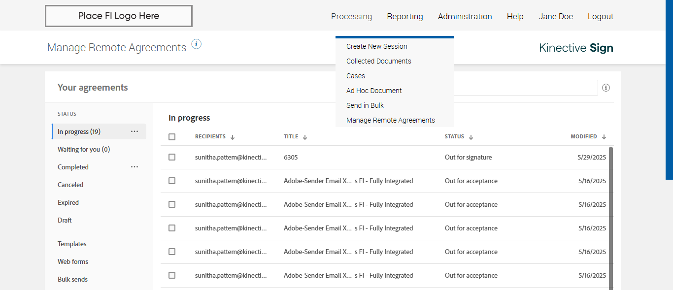 | 03:16:15 pm | Successfully verified that 'Manage Remote Agreements'is displayed in the Processing menu [ScreenShot] | |