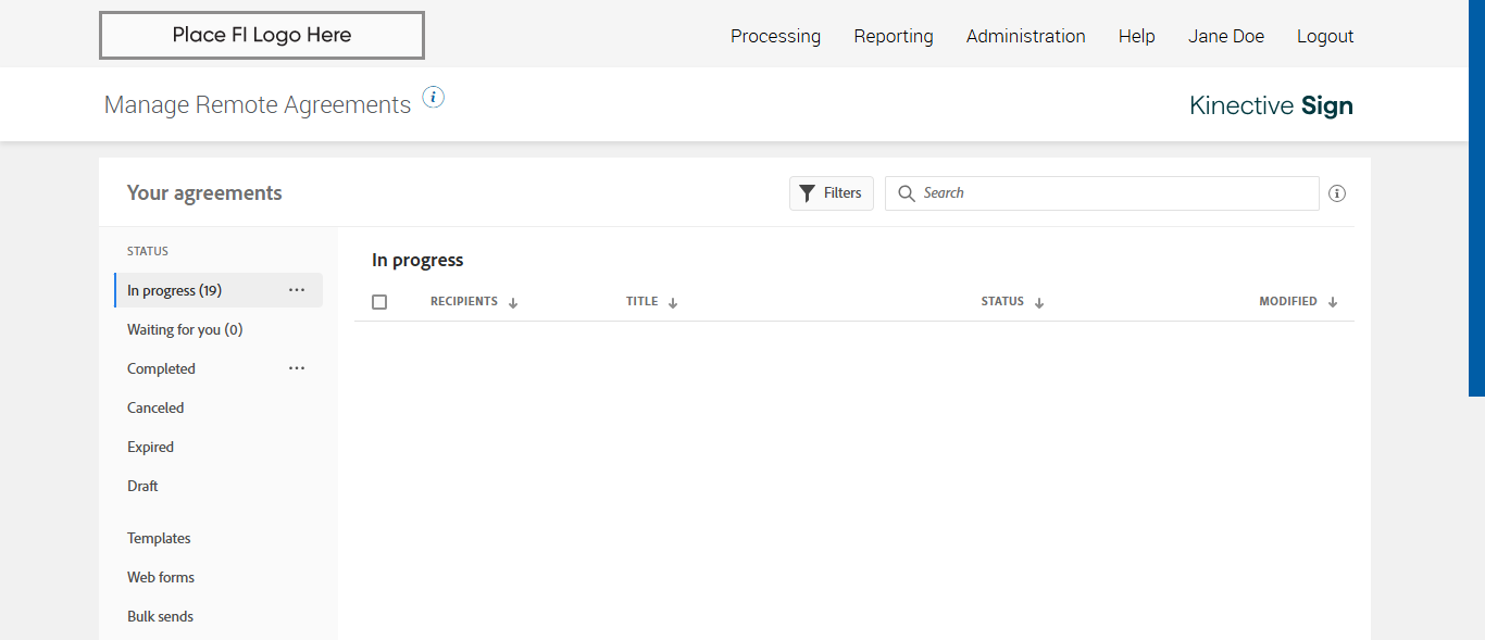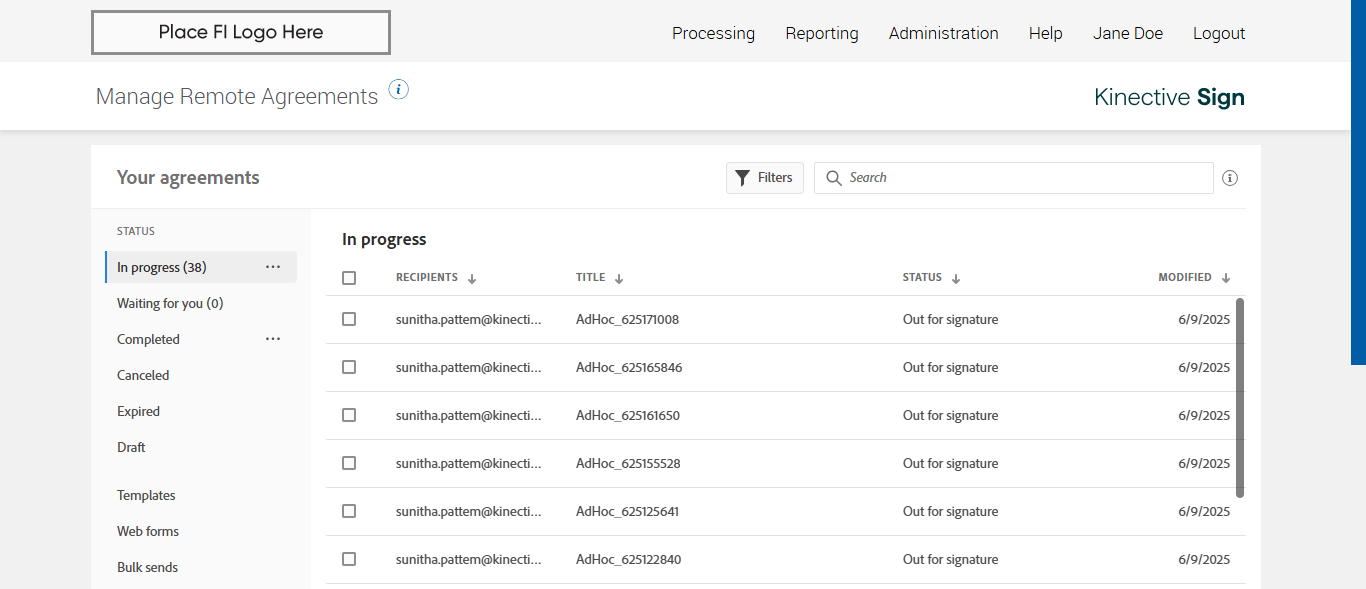Successfully verified that 'Manage Remote Agreements'is displayed in the Processing menu [ScreenShot] |