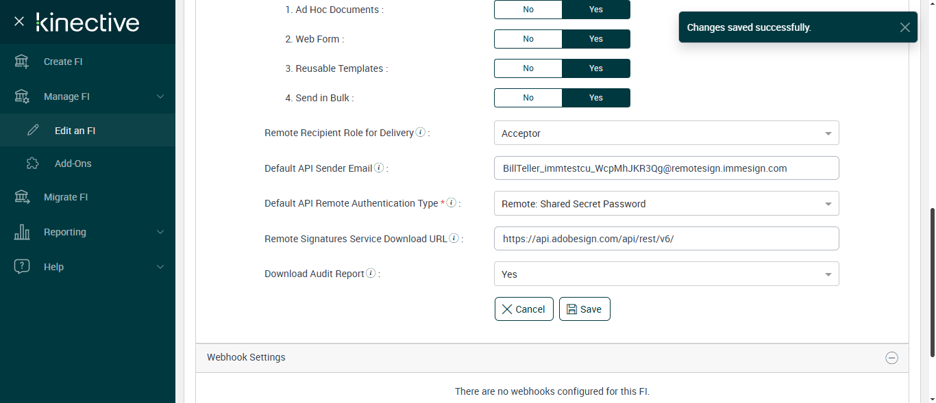 Login as FiAdmin with Existing FI : plusrmt1 |