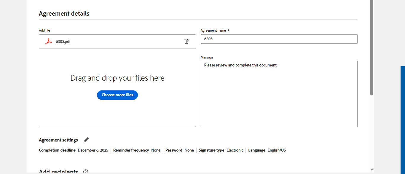 Successfylly diaplayed default Agreement name [ScreenShot] |