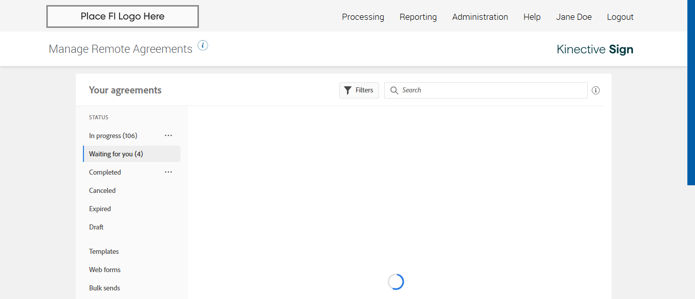 Manage Remote Agreement page displayed and 'Templates' status successfully