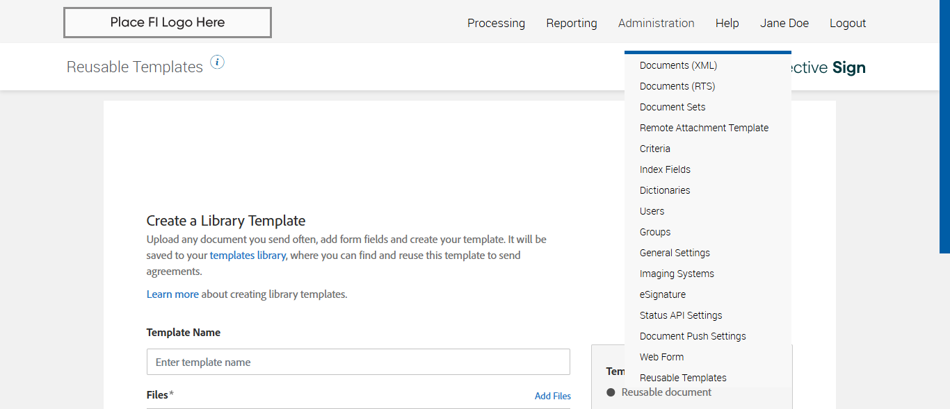 Login as FiAdmin with Existing FI : plusrmt1 |