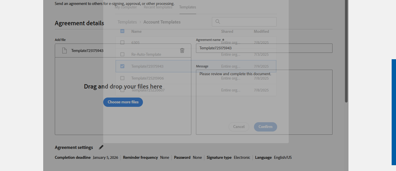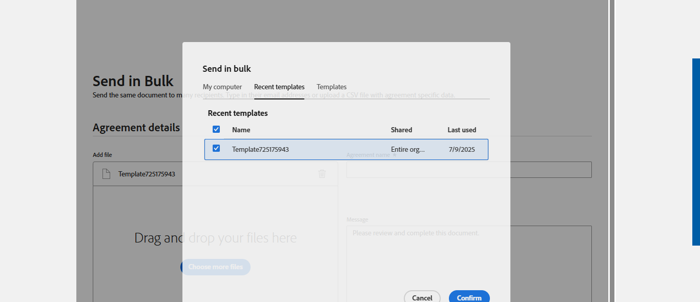 The Bulk send "Remote Sign Document", containing 3 agreements, has been queued for sending to recipients. Successfully sent Bulk Agreements to Remote The Bulk send "Remote Sign Document", containing 3 agreements, has been queued for sending to recipients. [ScreenShot] |