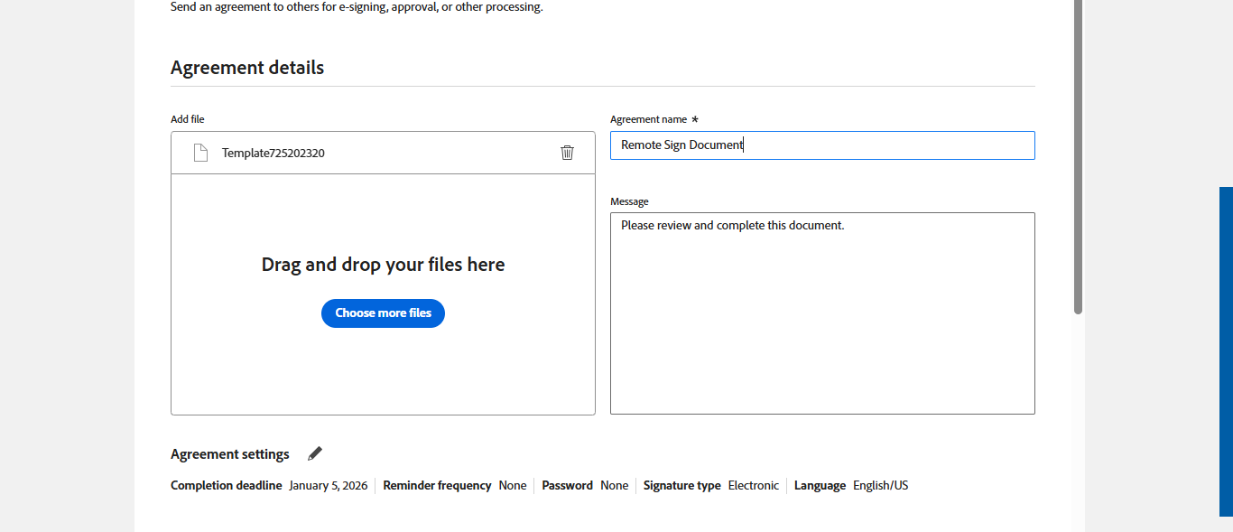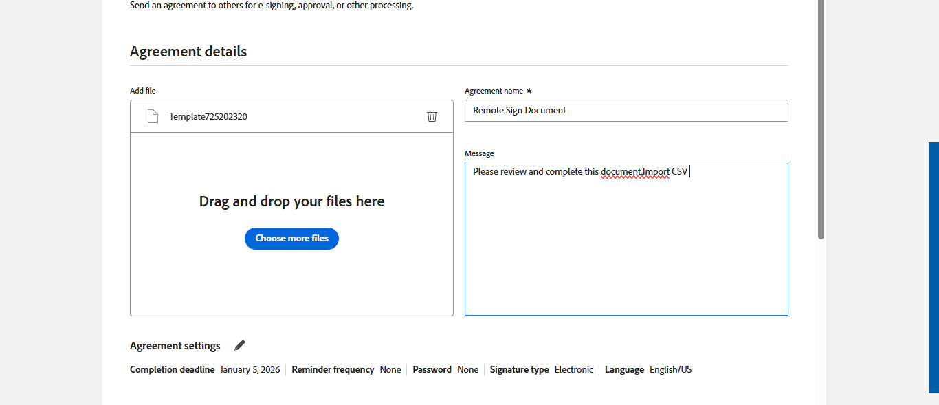 Success message The Bulk send "Remote Sign Document", containing 3 agreements, has been queued for sending to recipients.
