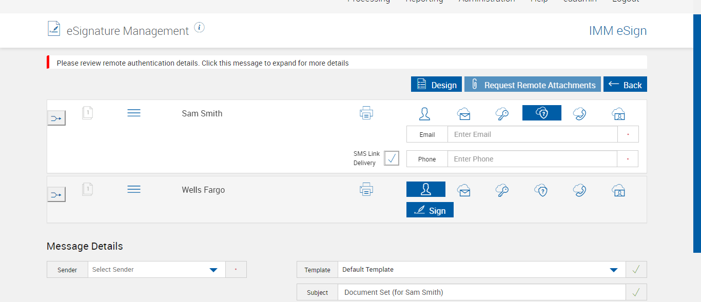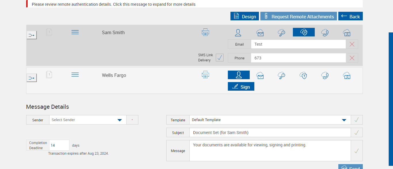 | 06:23:41 pm | Entered 'Message' : Your documents are available for viewing, signing and printing. | |