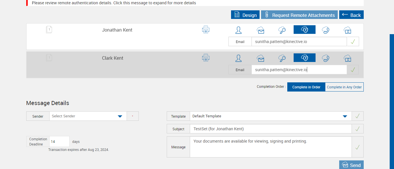 | 05:50:54 pm | Expected: The session is successfully submitted for Remote Signatures message should be displayed Actual(Passed): The session is successfully submitted for Remote Signatures is displayed [ScreenShot] |