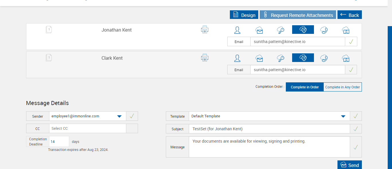 | 05:50:39 pm | Entered 'Message' : Your documents are available for viewing, signing and printing. | |