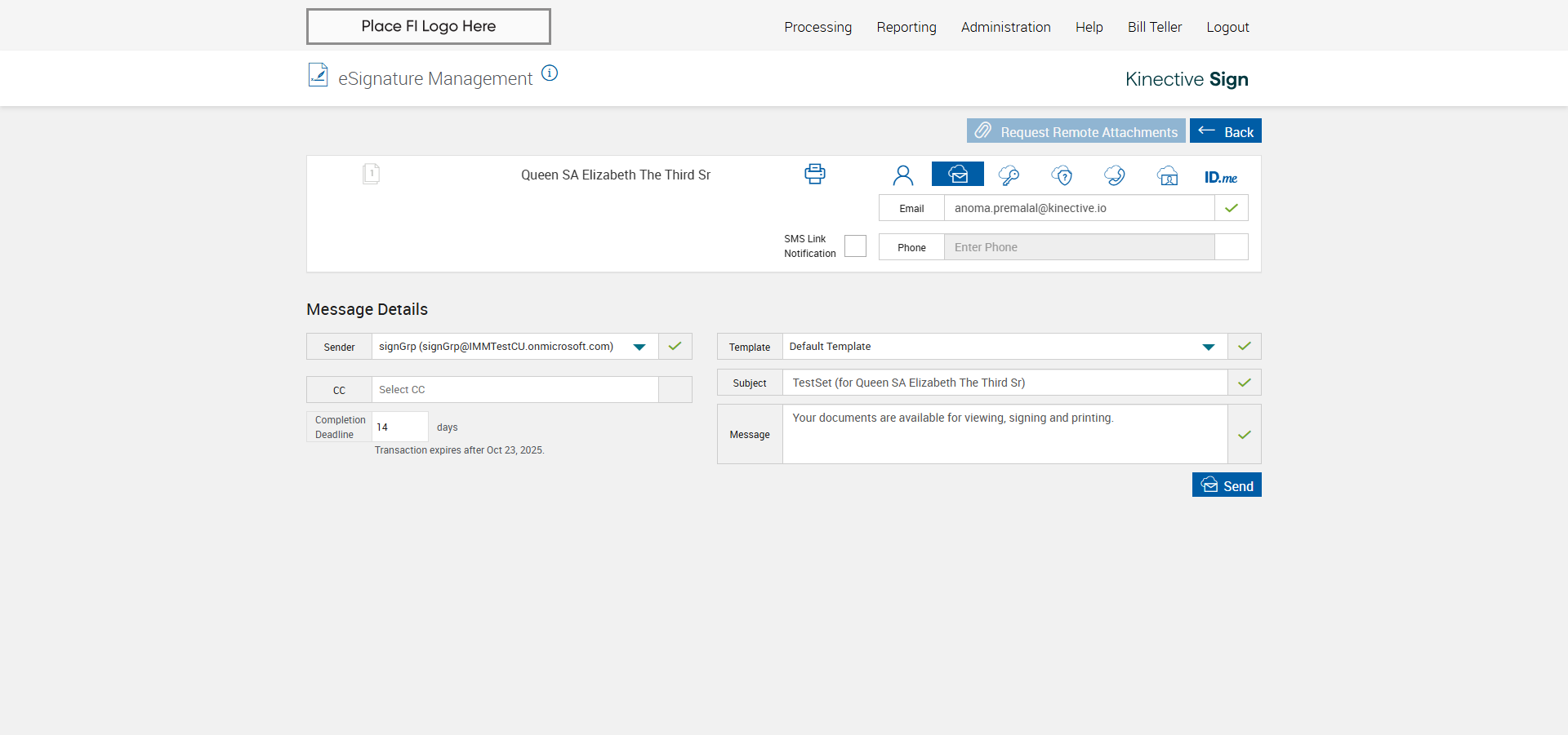 Expected: The session is successfully submitted for Remote Signatures message should be displayed
