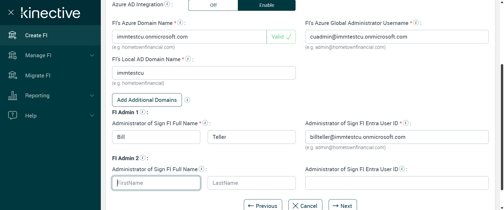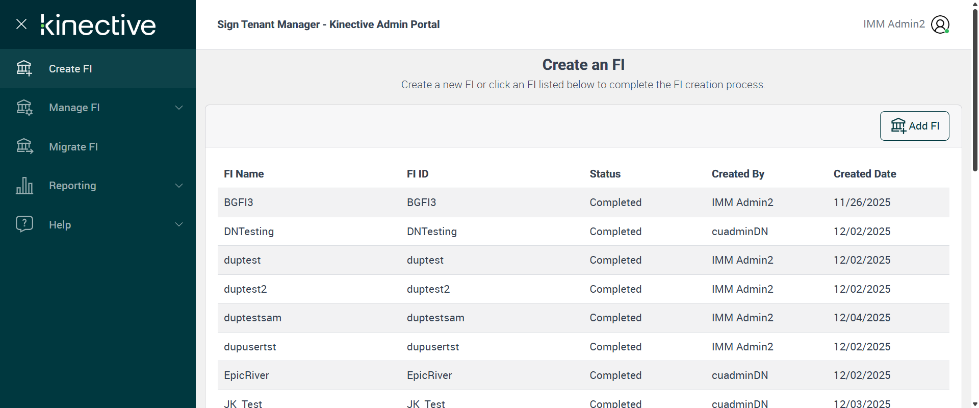 Successfully navigated to 'Create an FI' page [ScreenShot]