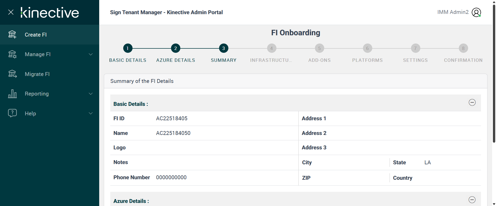 VerifyAzureDetailsSummaryAndInfrastrucure