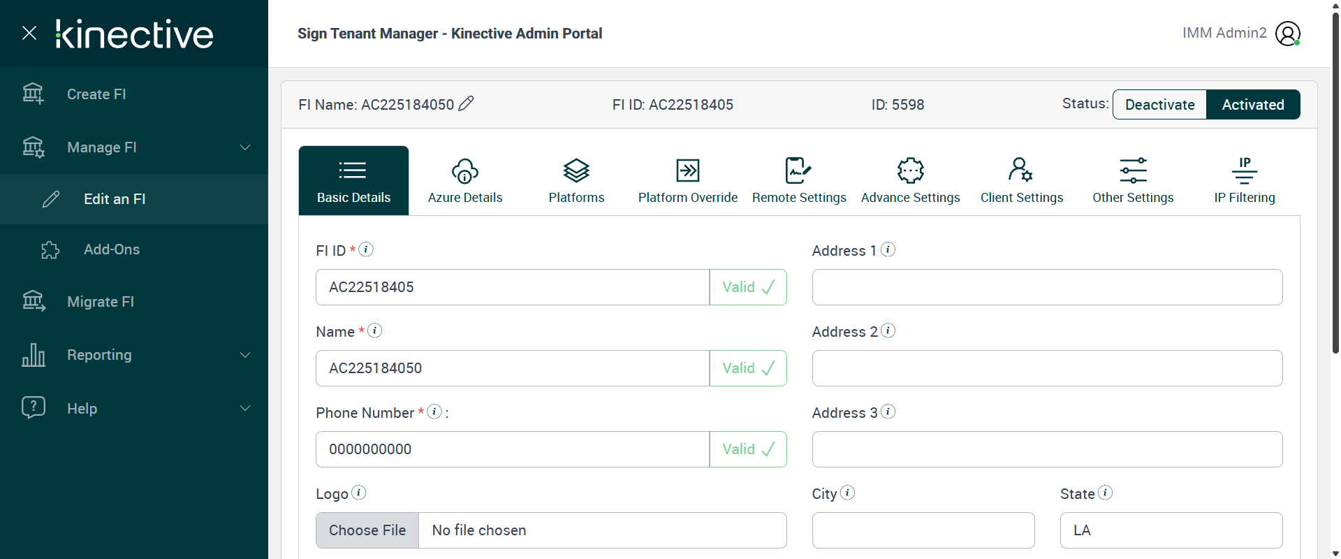 ({ZIP=, Login_User_ID=immadmin2@immesignqa.onmicrosoft.com, RemoteSettings=Integration Key / Account ID,Remote Agreement Options,Ad Hoc Documents,Web Form,Reusable Templates,Send in Bulk , FiStatus=Completed, WebForm=, AdobeKey=CBJCHBCAABAAcgo7jQyMd_Qns4r71HxtB62fjfGeg7Z1, FiAdmin_LastName=Teller, Name=AC, LocalDomain=immtestcu, Adhoc_Doc=, eSignPlus=Off, RtmAuthTypes=InPerson,Email,Password,KBA,Phone,GovernmentID,ID.me, IntegrationType=Fully Integrated, NotUSerName=, SendInBulk=, RemoteSign=Enable, DrpSpot=Off, Reusable_Temp=, AZDomain=immtestcu.onmicrosoft.com, VerifastEDays=, City=, WrongAZDomain=, LCEvalDays=, State=, LoanCoupon=Off, Login_Password=iMM@2024, Country=, ClientID=3AAABLblqZhCQLd3zpFZKjJbAHz9Iltx9H66PUQv34Itep5CnjFb_Ehcl4GOj6Tx0Y5dNSNcgnfoFtmjwvBuopeEtD4QtE_yU, anonymusFI=, FIID=AC, Key=a958c406-5127-4d2e-9d24-d441b447fa6a, FiAdmin_FirstName=Bill, Dictionary=TeSign;XPLN, Sign_RmtAgree_NotChecked=, StarterEvalDays=, Description=, StarterChecks=Off, eSignURL=https://esignplusqa.immesign.com/TEAASP/Login.aspx, E-Vault=Off, Filepath=, TestID=VerifyDigitalNotaryTMFunctionality, FiAdmin_UserID=billteller@immtestcu.onmicrosoft.com, Verifast=Off, LacerPro=Off, Notes=, Session URL=https://esignnonprod.immesign.com/qa/tenantmanager/, GlobalAdmin=cuadmin@immtestcu.onmicrosoft.com, TypeOfUser=IMM Admin2, eValultDays=, MenuUserName=, ErrorMsg=, Address2=, Address3=, Address1=, Sign_Password=, UserTooltip=, WrongFIID=, DrpEvalDays=, Sign_RmtAgree_checked=})