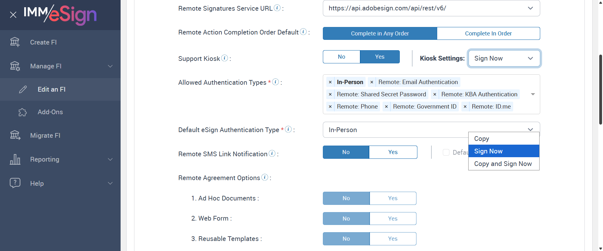 | 10:41:58 am | Select value 'Copy and Sign Now' from Kiosk Setting dropdown field [ScreenShot] | |