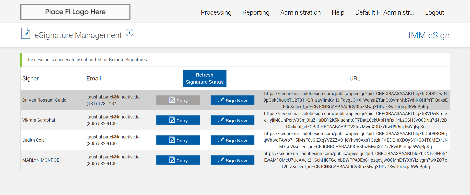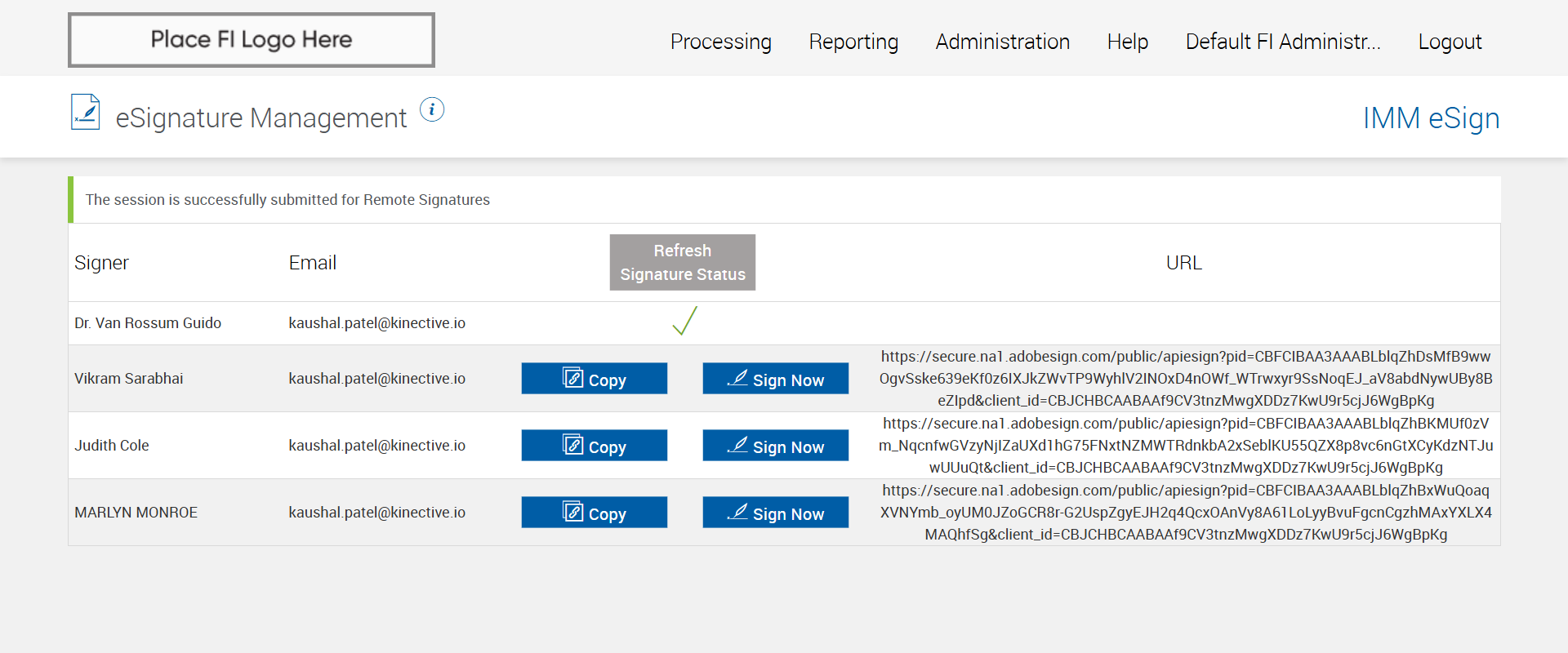 Successfully navigated to the 'eSignature Management' page [ScreenShot]