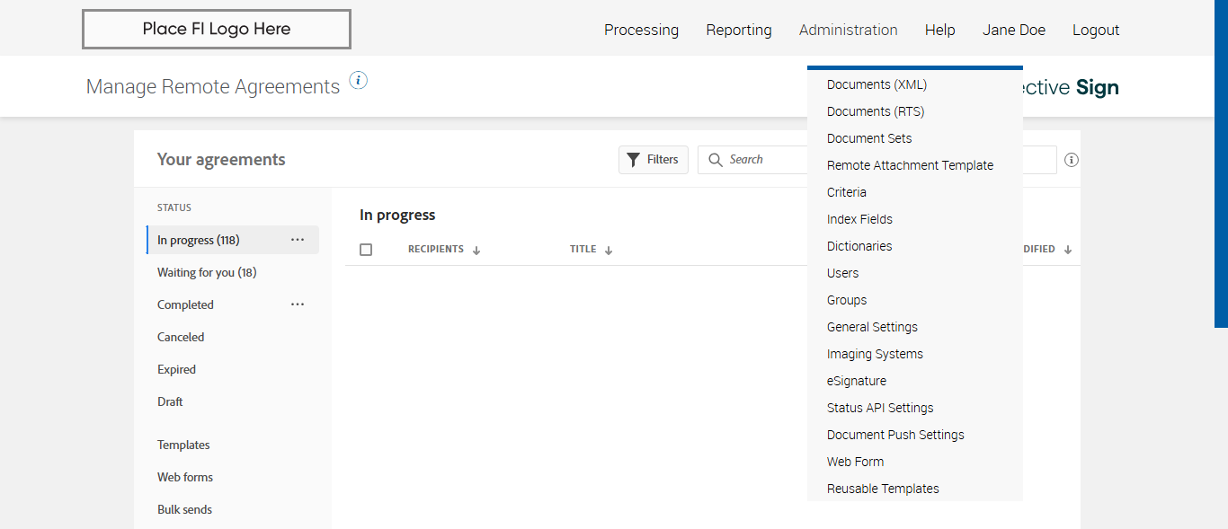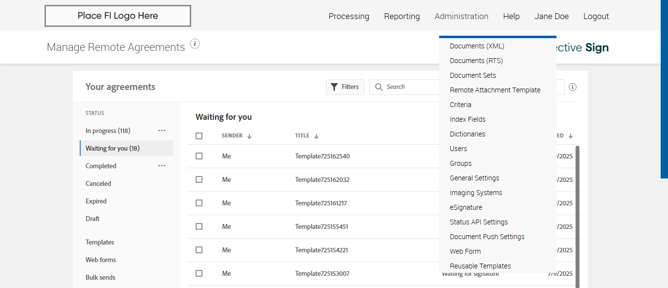 Manage Remote Agreement page displayed and 'Bulk sends' status displayed successfully [ScreenShot] |