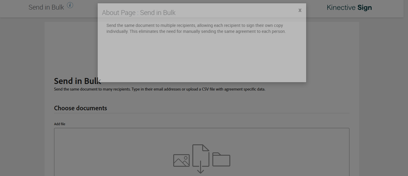 | 07:38:26 pm | Expected: Expected Tooltip Send the same document to multiple recipients, allowing each recipient to sign their own copy individually. This eliminates the need for manually sending the same agreement to each person. Actual(Passed): Successfully verified 'Send in Bulk page' Tooltip Text Send the same document to multiple recipients, allowing each recipient to sign their own copy individually. This eliminates the need for manually sending the same agreement to each person. [ScreenShot] |