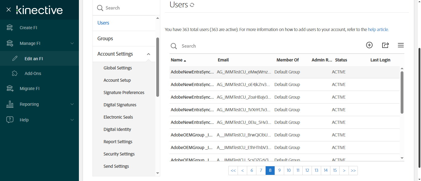 Searching for user 'AccountCreation _IMMONLINE_' on page 8 [ScreenShot] |