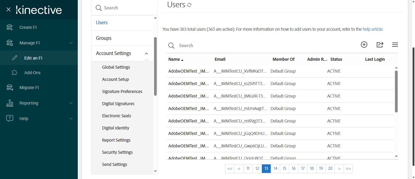 Searching for user 'AccountCreation _IMMONLINE_' on page 13 [ScreenShot] |