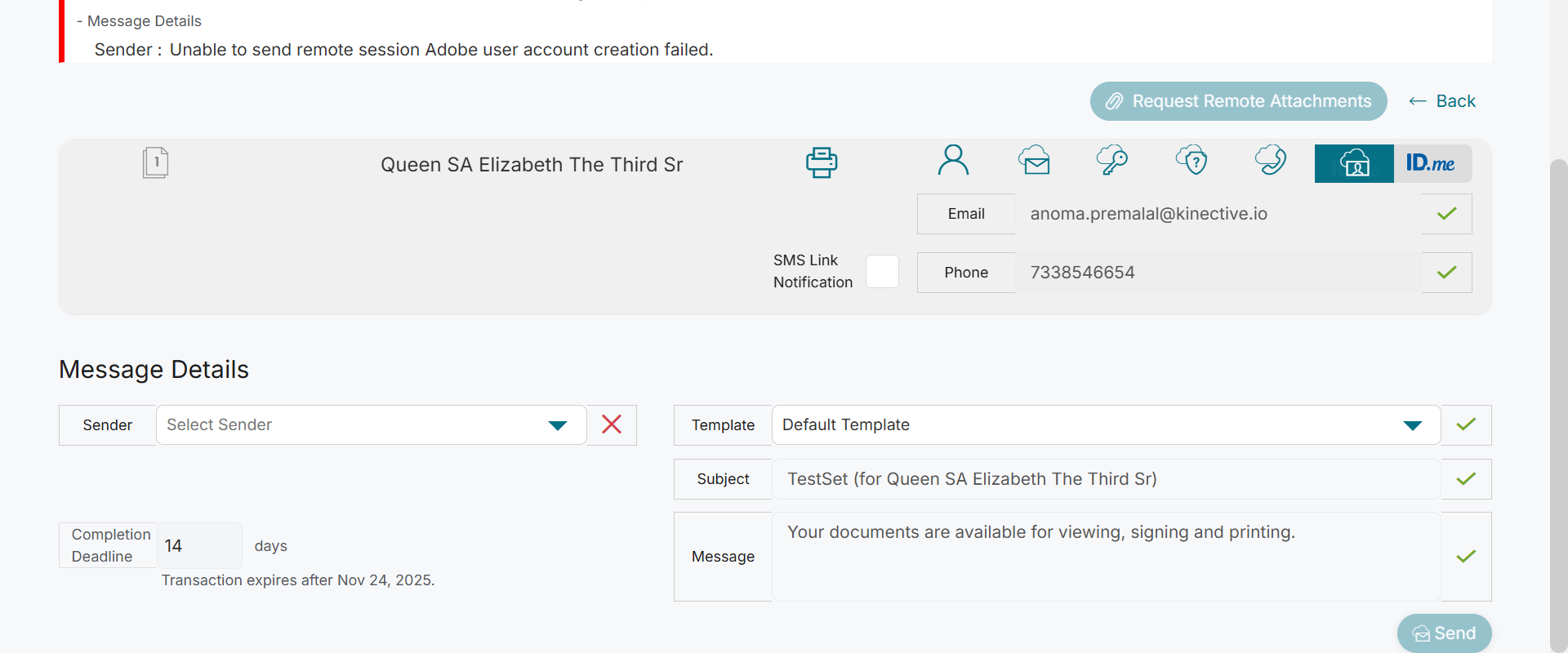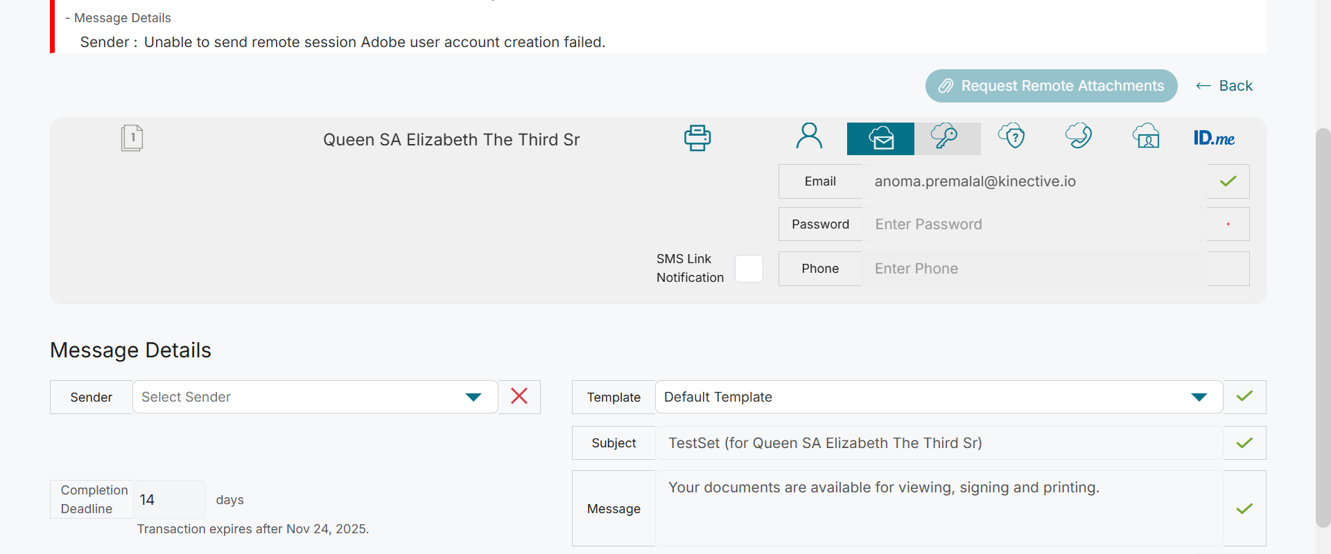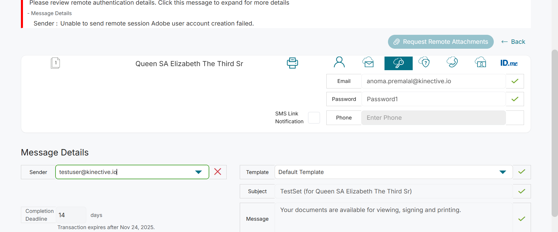 ({Tenant_URL=, InboxName=, Platform=, Address=, Username2=, IsSignRequired=, tooltip=, User_Password=iMM@2022, Sender_Emails=, Name=, PartiesToView=, GROSSPPP=, IsAddedTemplateRequired=, Zipcode=, ReceivedFromNames=, EditCompletionDays=, TemplateTitle=, plusfi=FALSE, DummyUser=, EditMessageSubject=, IntegrationType=Fully Integrated, DocumentName=, AttachmentTemplate=, FirstTransfer=, Dropdownvalues=, Remote_Signing_Type=Email, KeepUnlock=, Workflow=, Birthdate=, AttachmentTypeOption=, SecondTransferUserID=, NumOfAttachments=, CompletionOrder=, ReceivedFrom=, Driving_license=, DocumentSet=, Test_type=, UserType=, Tenant_User=, Applytype=, Group=anomaGRP,AdobeGroup,Test Group Management, Description=Verify Sender Dropdow In eSignature Mgt Page With User Emails has less than 60 Chars - Sign FI- XML SESSIONS, fi=signOEMfi, User=, MessageSubject=, Message=Your documents are available for viewing, signing and printing., NoOftemplates=, FirstTransferUserID=, Phone_Number=, SearchUser=, Step Name=, Filepath=, Owners=, TestID=VerifySenderDropdowIneSignatureMgtPageWithUserEmailsExceeds60ChrsBlankAndLessThan60Chrs, FItype=, IndexSource=, WorkfowName=, Sessionurl=https://esignplusqa.immesign.com/TEAASP/HostDispatch.aspx?hostid=XP&hsfiid=signoemfi&xmlData=D:\Automation_DataFiles\Primary6.xml, Inbox=, Password=, CC=immuser@immonline.com, View/Skip_Group=, Tenant_Password=, User_Name=snoopy@IMMTestCU.onmicrosoft.com, UserName=, ViaAddDocs=, CompletionDays=, AddTemplateName=, Email_Id=snoopy@immonline.com,anoma.premalal@kinective.io, Comments=, IsOptionalSig=, FI_ID=, Sender_Email_Id=snoopy (snoopy@immonline.com), UserName2=, From=, UserName3=, SecondTransfer=, Email_Password=, UserName1=, Subject=Auto-Loan, SSN=, Response=, EditTemplateTitle=, MariageStatus=, DummyUserID=, ErrorMessage=})