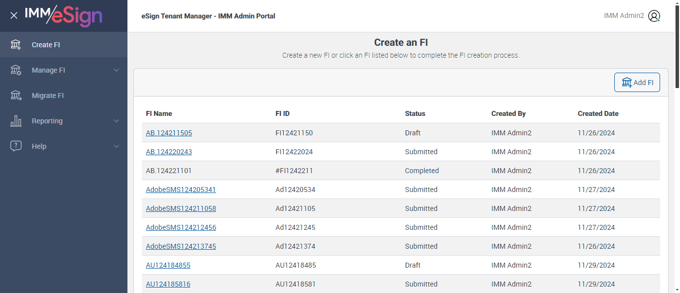 Successfully navigated to 'Manage FI' page [ScreenShot]
