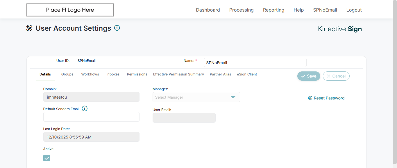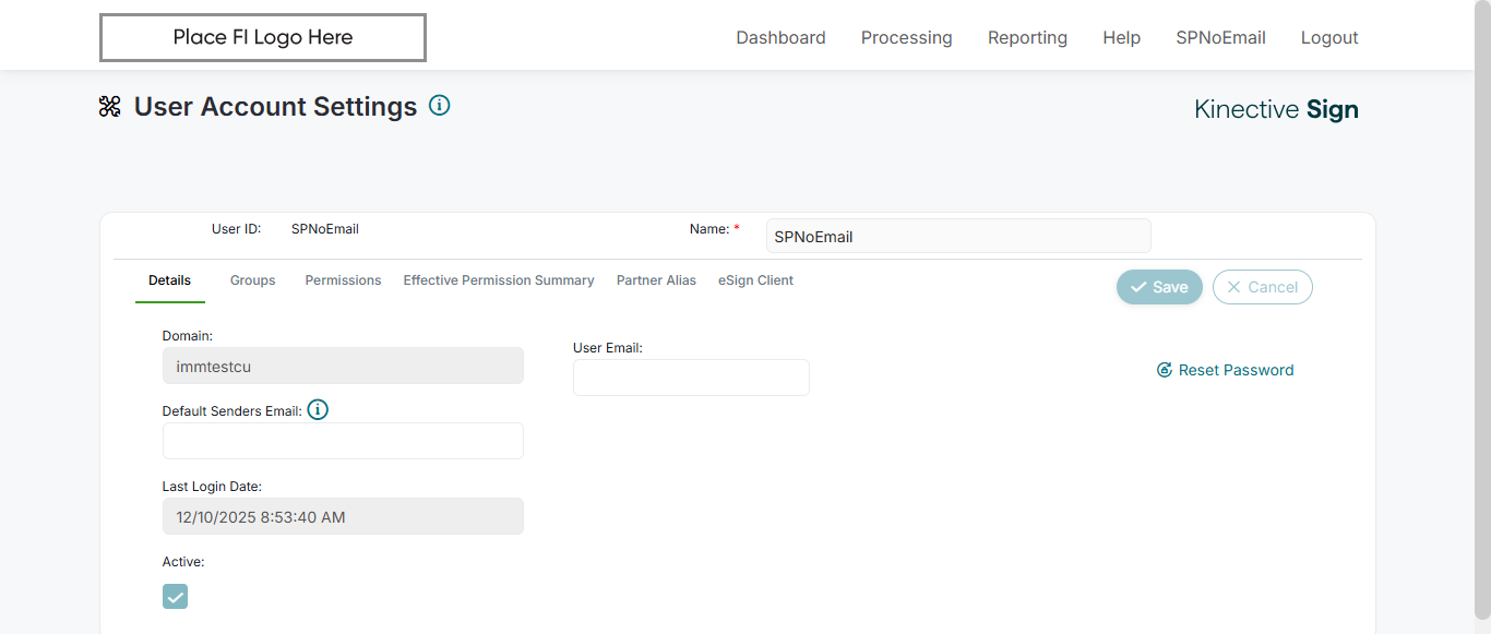 Actual(Passed): ✅Successfully verified Exclamation mark is not displayed when user email is blank for Fully Integrated FI[ScreenShot] Expected: Exclamation mark is not displayed in User Account Settings page when user email is blank for Fully Integrated FI