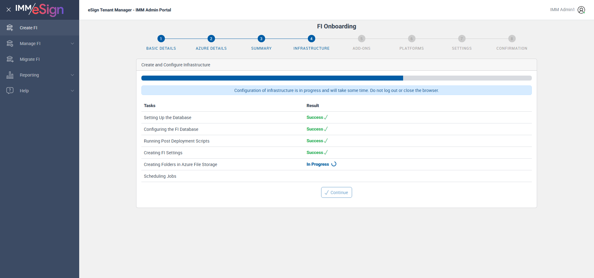 Successfully Configured 'Creating FI Settings'
